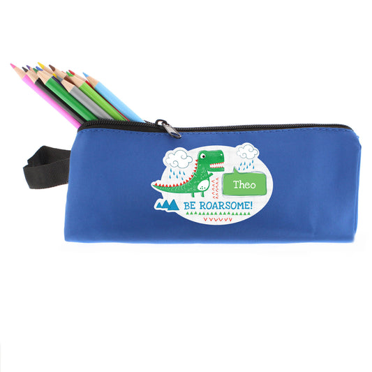 Personalised 'Be Roarsome' Dinosaur Blue Pencil Case
