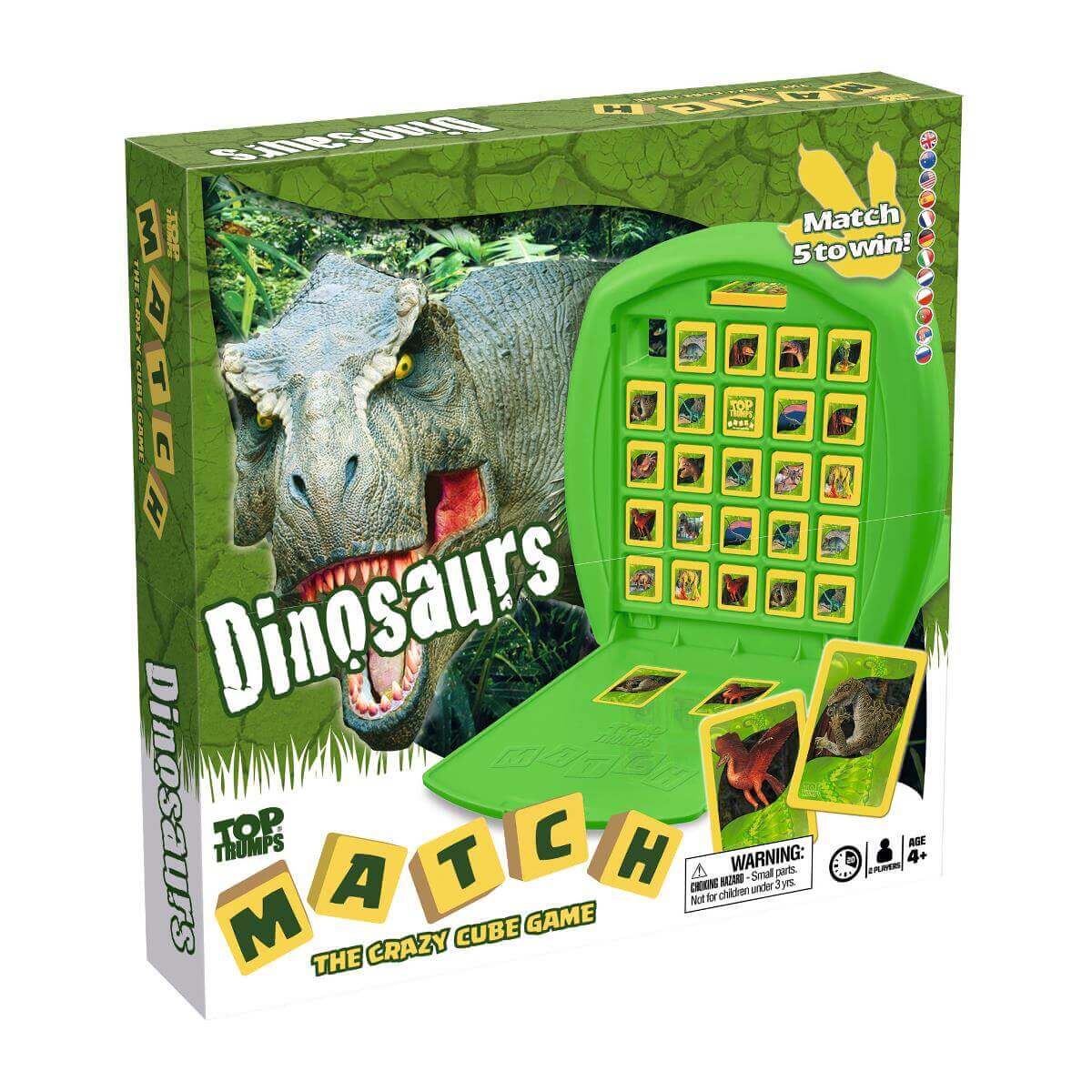 Are you a dinosaur fanatic? Well, now's the time to dig up your favourite dinos and match five in this edition of Dinosaur Match! Play the Crazy Cube Game and be the first to match five dinosaur cubes in a row to win the game. But wait the game's not over yet, can your opponent snatch the match in the final moment? If they match their Top Trumps card with the winning dinosaur, they WIN the game!
