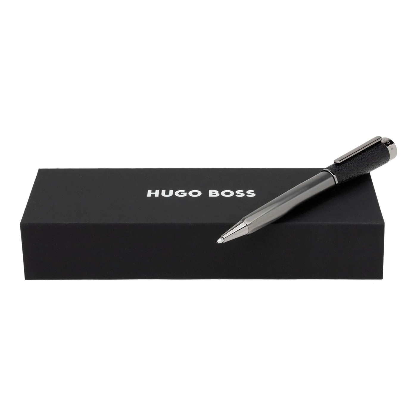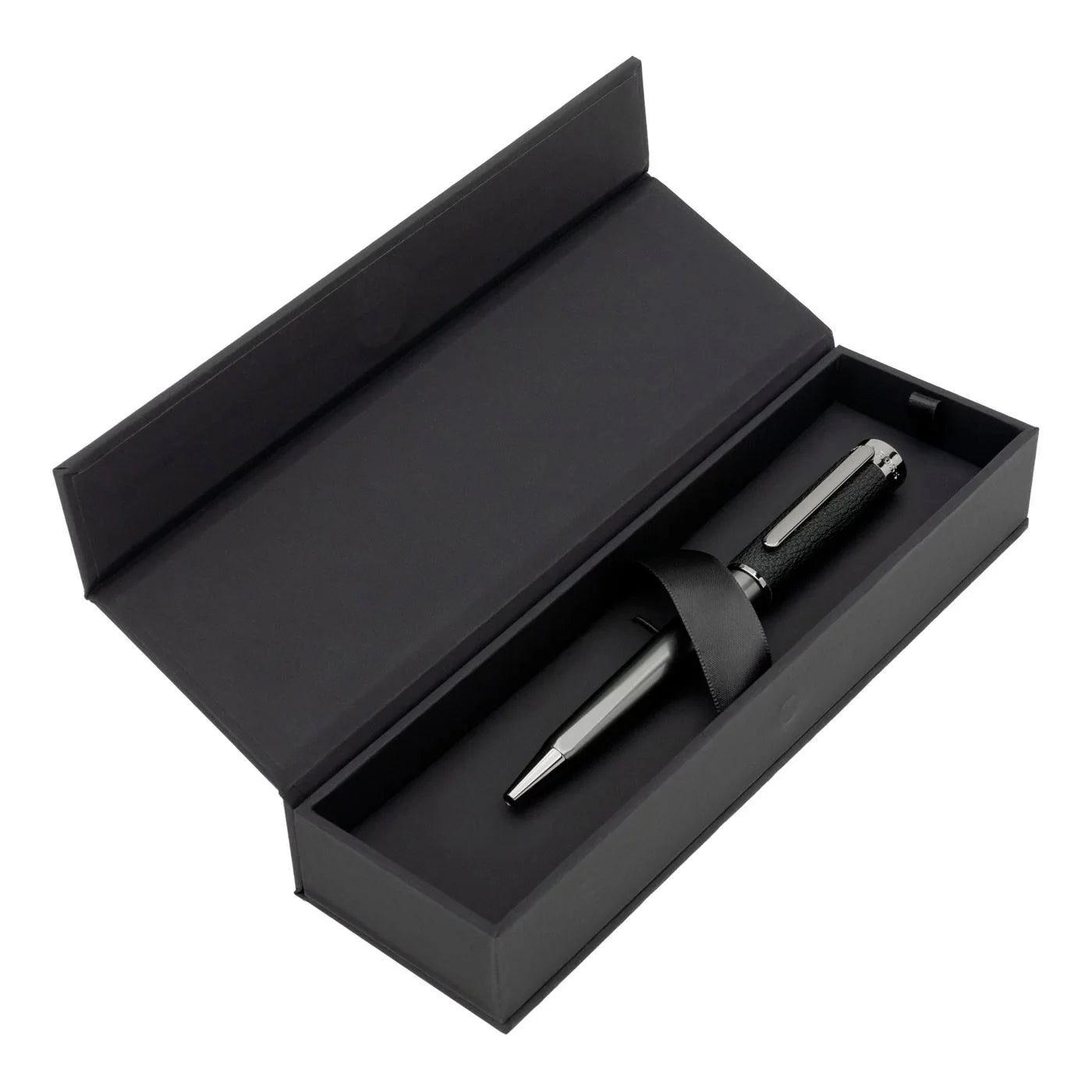 The Hugo Boss Corium Black Ballpoint Pen comes presented in a gift box and with a sleek design, the core of this pen is made of brass and comes with a cap which is wrapped with a vegan leather for a textured feel. One of the key features of this pen is that it comes with a discrete Hugo Boss Embellishment placed at the top of the cap to ensure it stands out from others.