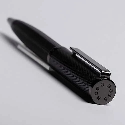 Experience the fusion of aesthetics and ingenuity with the Hugo Boss Formation Herringbone Gunmetal Ballpoint Pen. Each stroke tells a tale of sophistication and refined taste, as this exceptional writing instrument becomes an essential companion in your daily endeavours. Elevate your writing journey with this remarkable piece, a true embodiment of Hugo Boss's unwavering commitment to luxury and excellence.