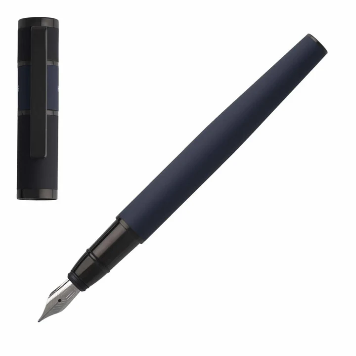 The Hugo Boss Formation Ribbon Collection pulls together active and modern perfectly with its intellectually elegant shape. The Hugo Boss Formation Ribbon Fountain Pen is brought together beautifully by the dark chrome trims enhancing the contrasting dark blue and black lacquers.
