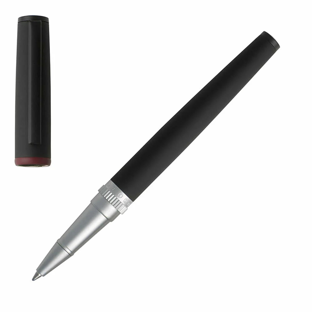 The Hugo Boss Gear Collection is presented in an aerodynamic shape projecting an active feel with its perfectly balanced frame. The Hugo Boss Gear Black Rollerball Pen is contrasted by a unique strip of red detailing on the tip, bringing a certain energy to the collection.