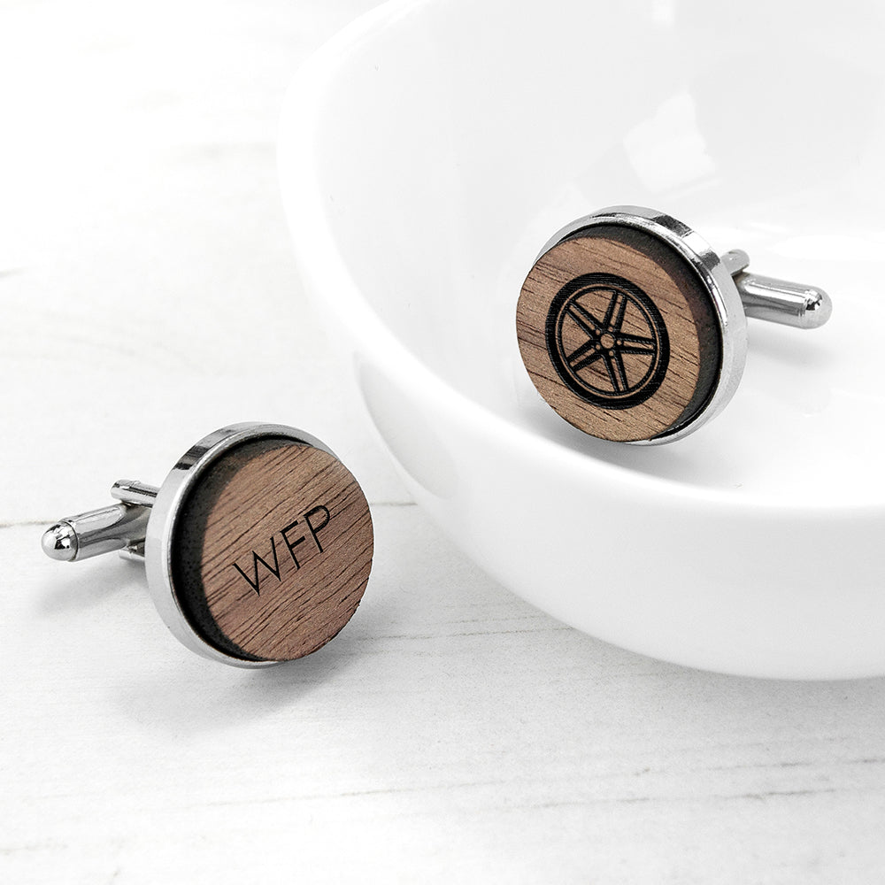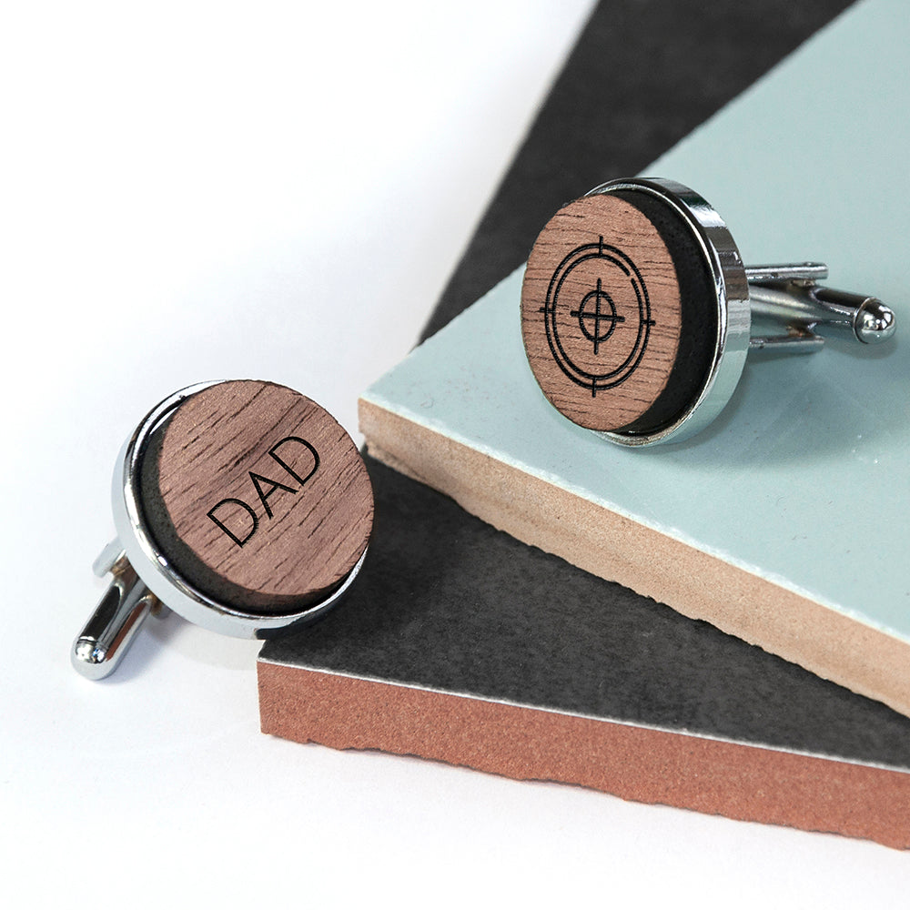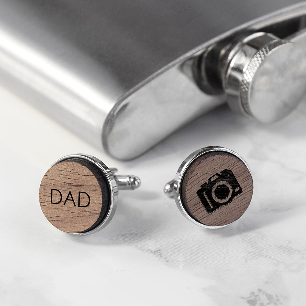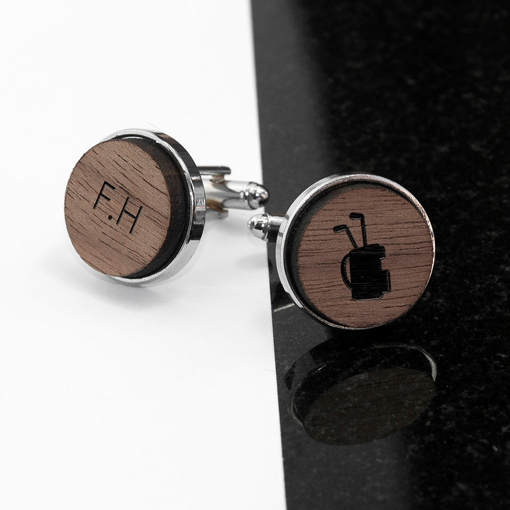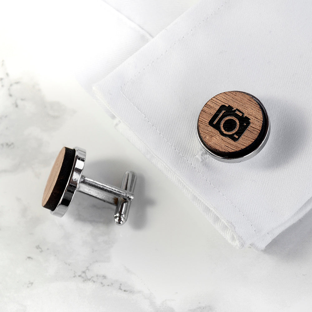 Iconic Hobbies Engraved Round Walnut Cufflinks