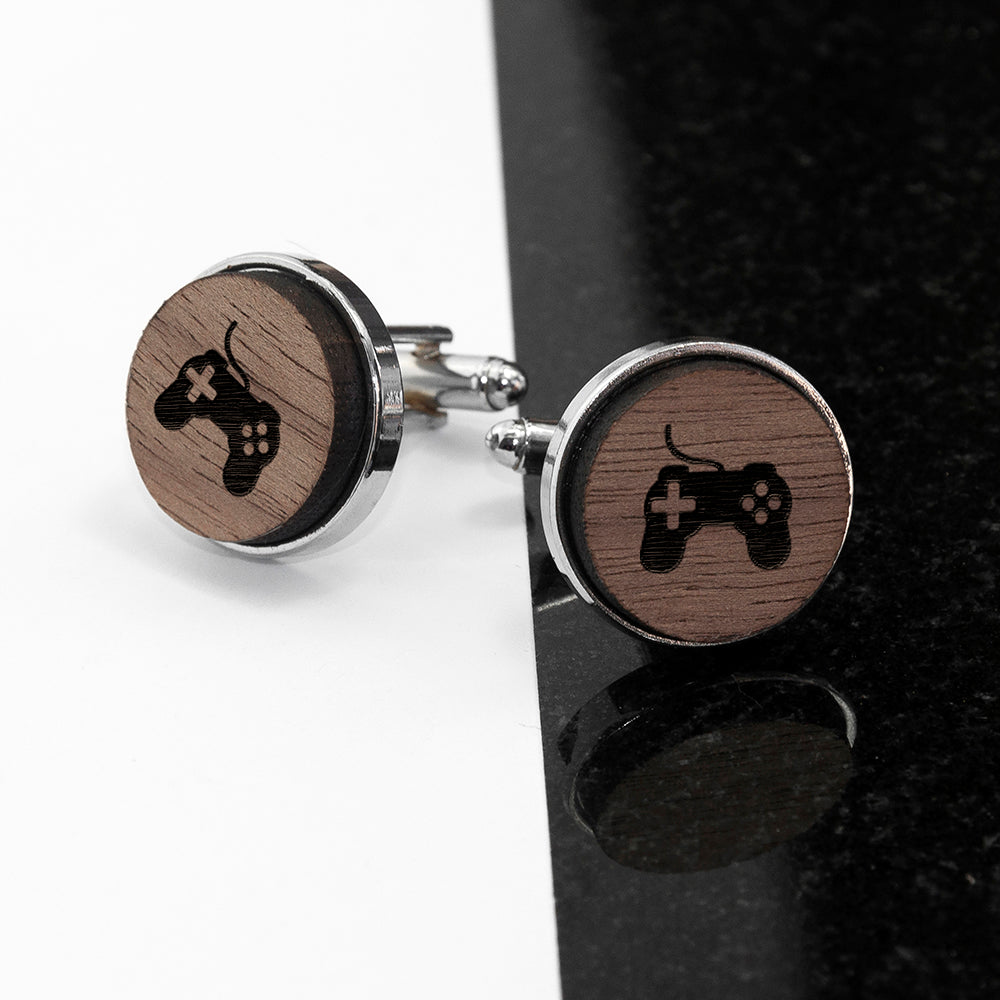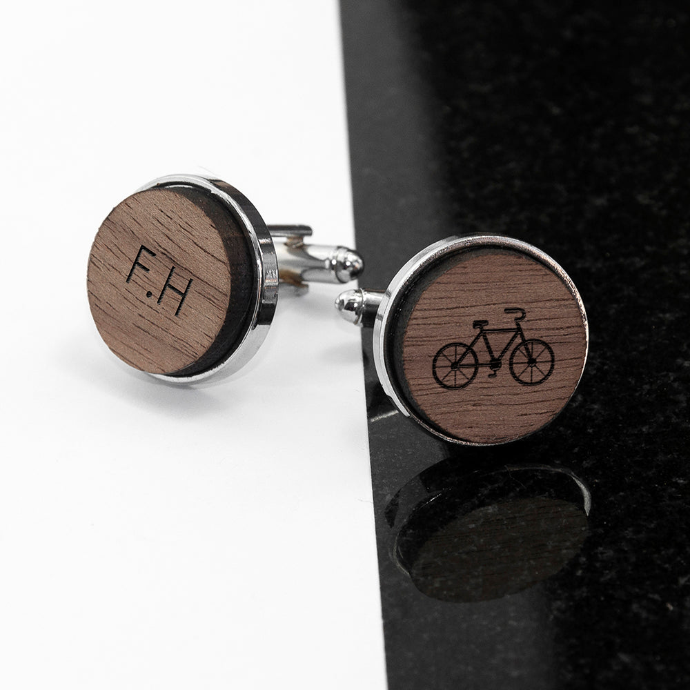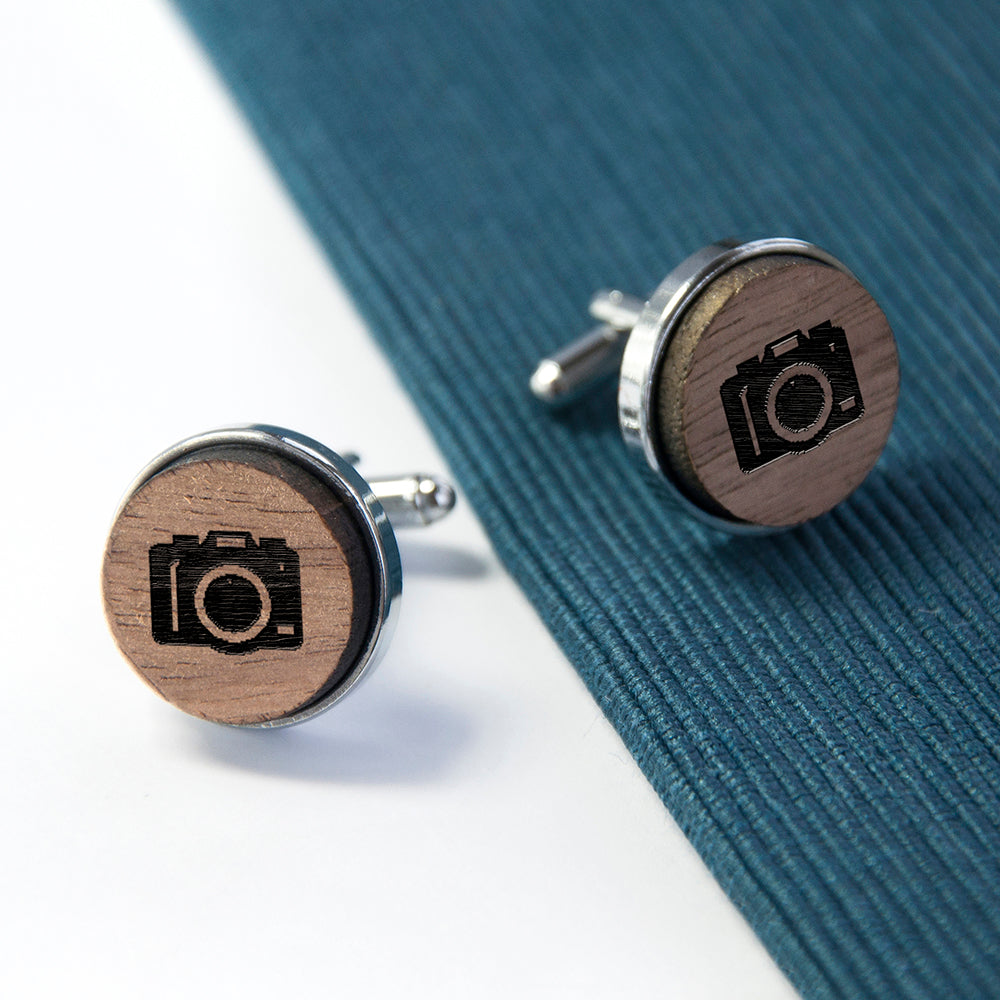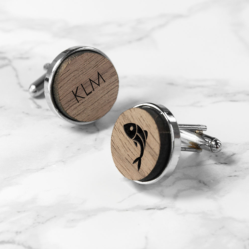 Iconic Hobbies Engraved Round Walnut Cufflinks