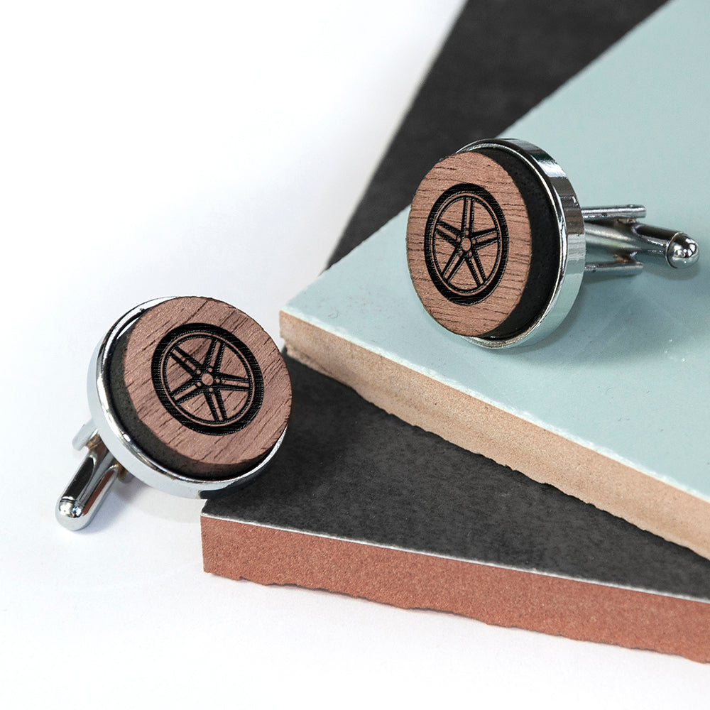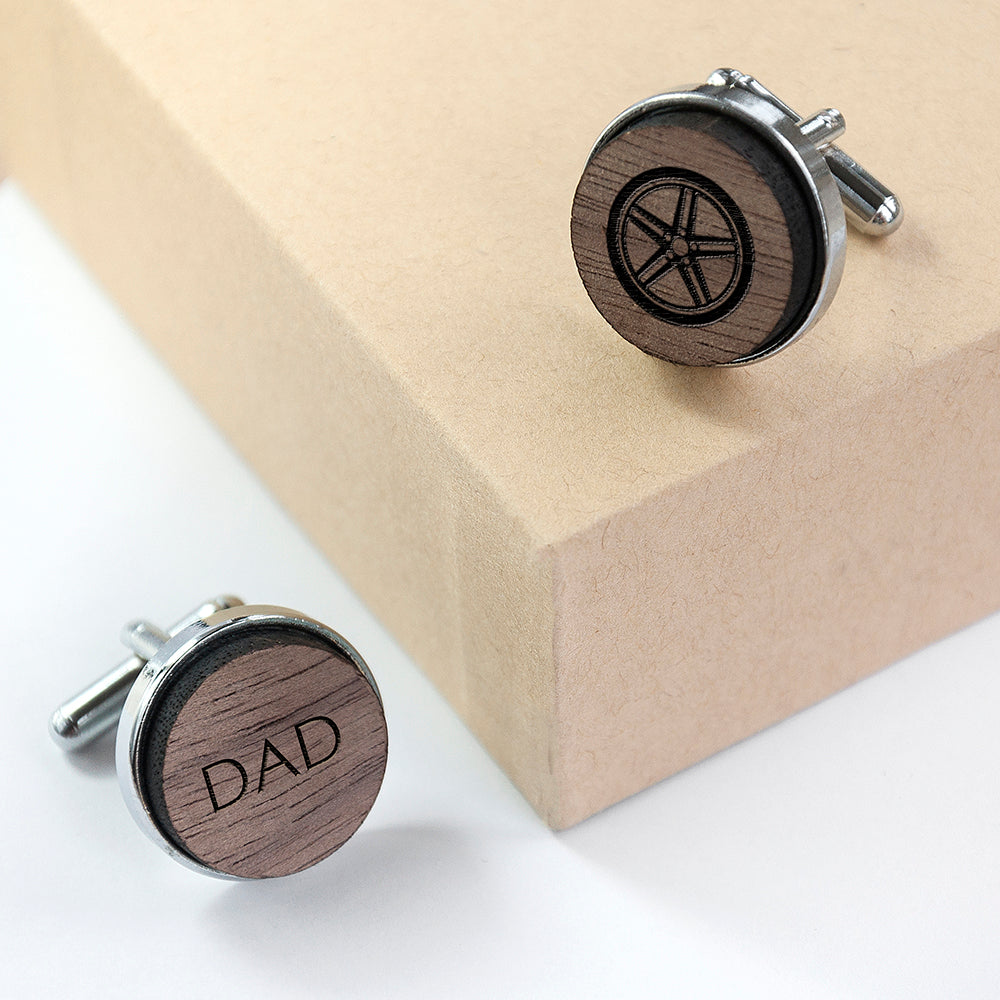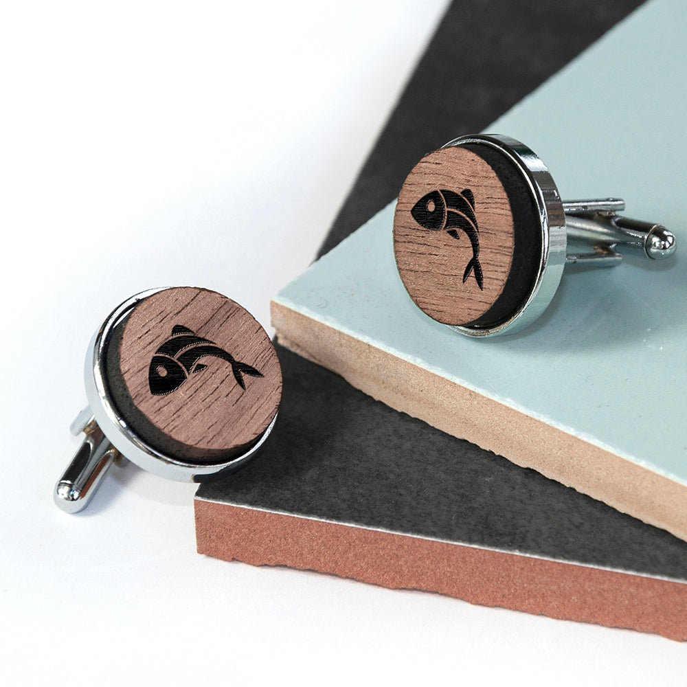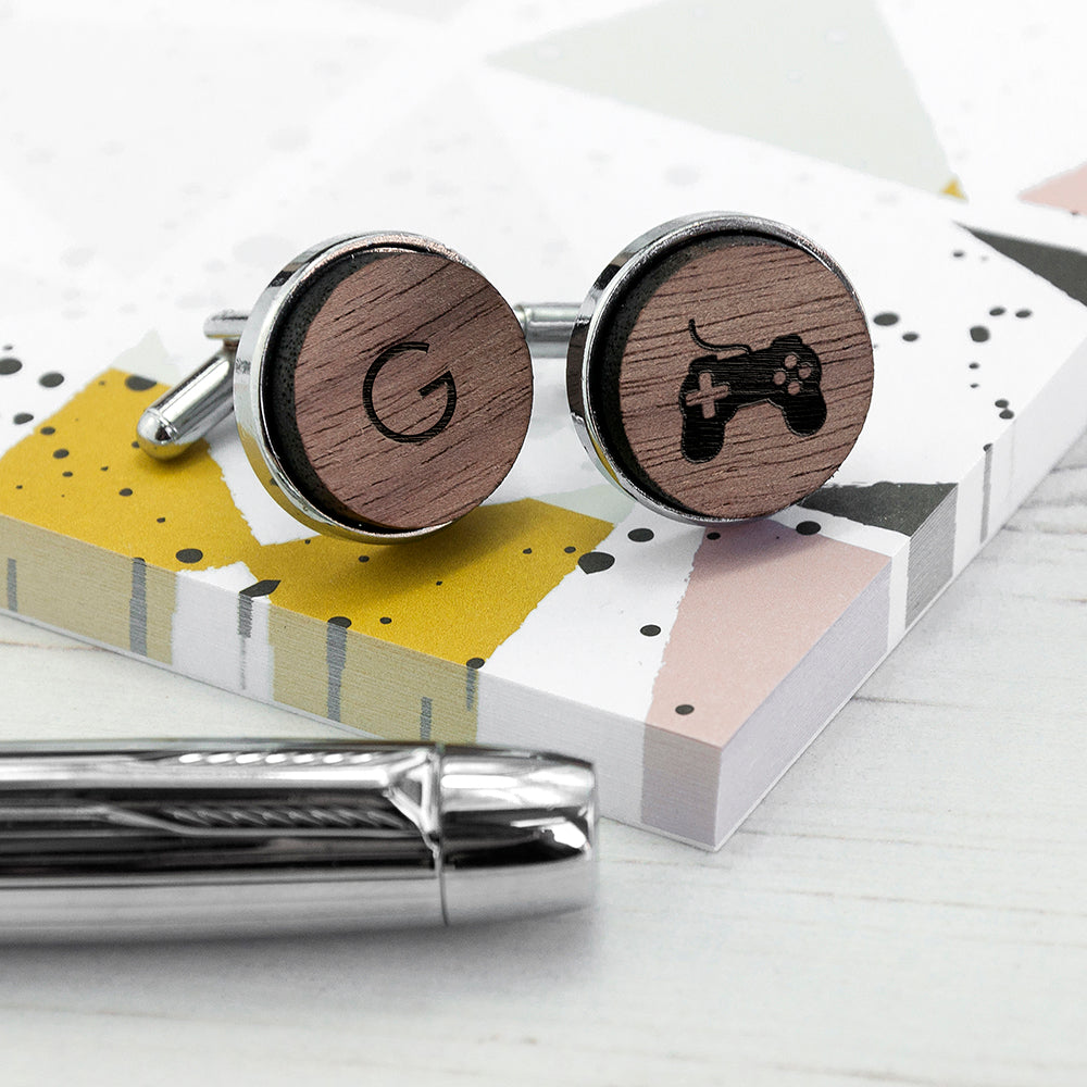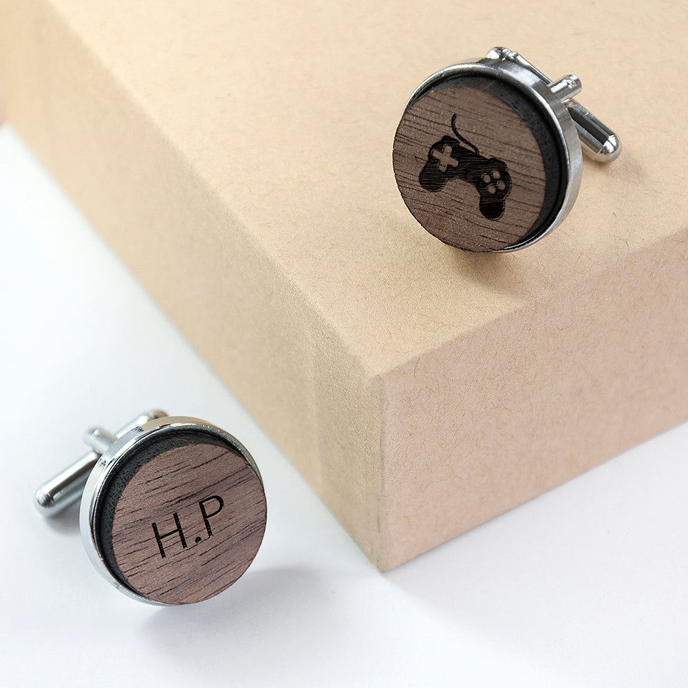 Iconic Hobbies Engraved Round Walnut Cufflinks
