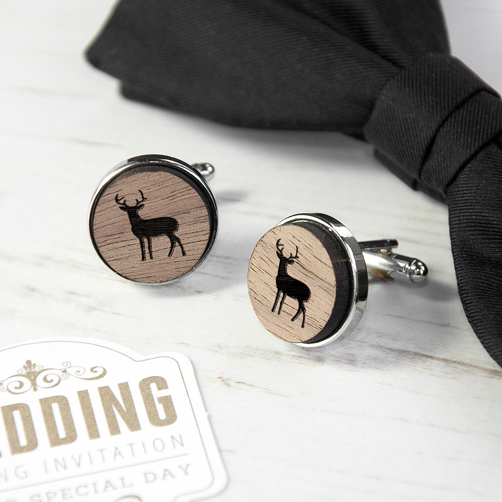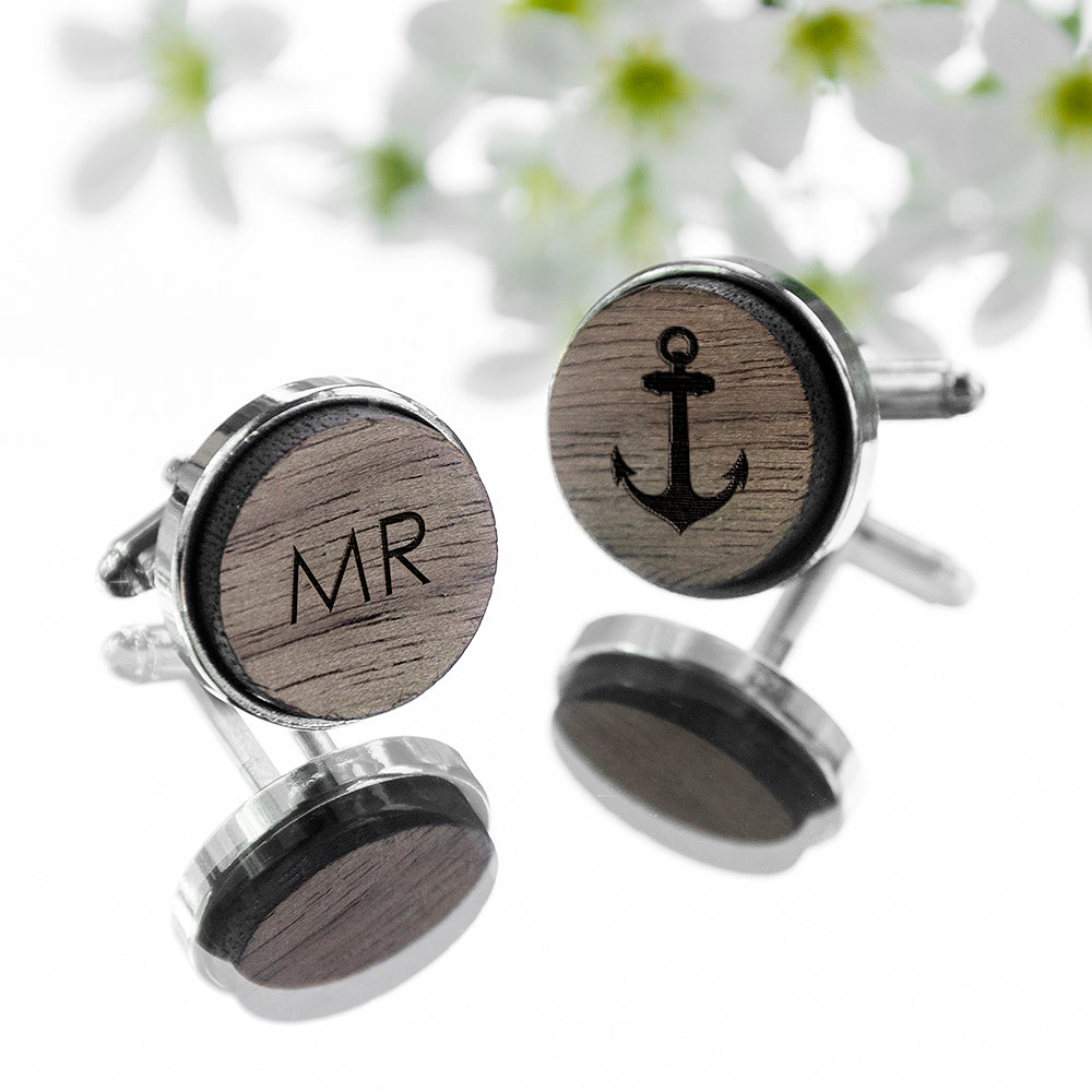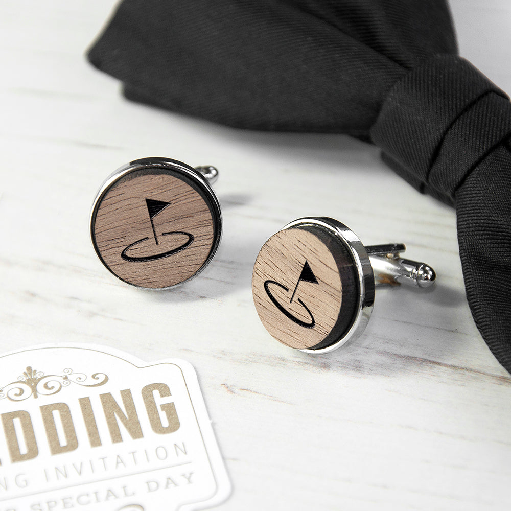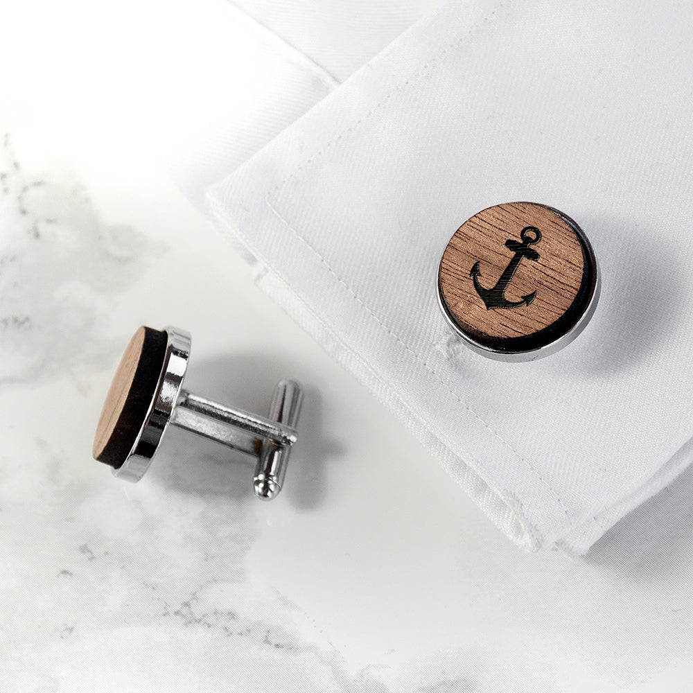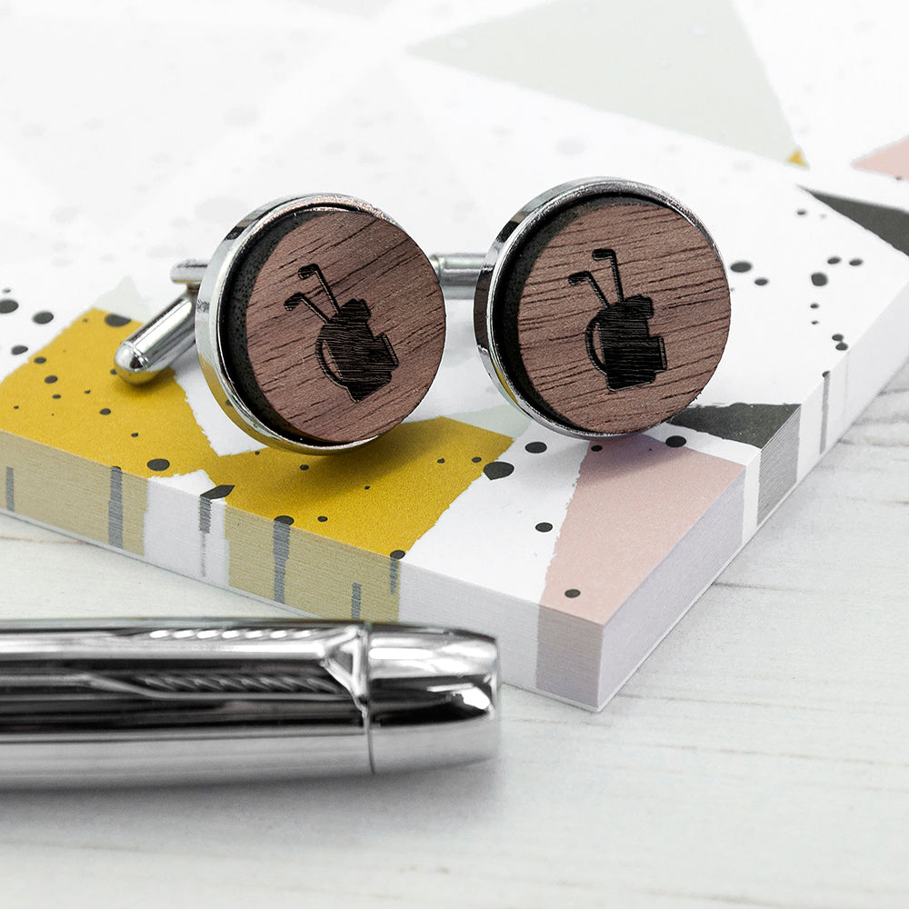 Iconic Hobbies Engraved Round Walnut Cufflinks