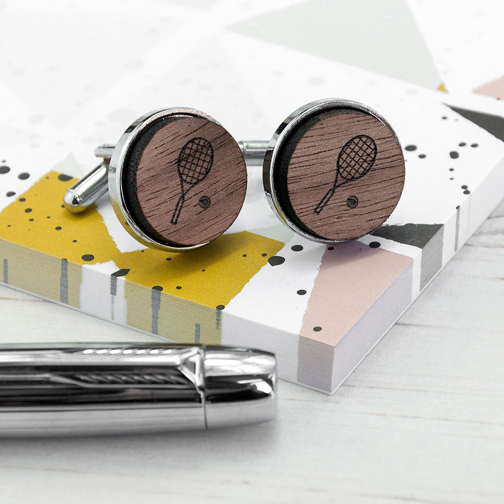 Celebrate his passion with these unique, personalised hobby cufflinks! From cycling and golfing to football and tennis, we've covered every interest. He'll proudly wear an icon representing his favorite pastime, beautifully engraved onto sustainable walnut wood. Can't pick just one? Choose a different hobby for each cufflink to reflect his diverse interests! Each wooden inlay is lovingly mounted onto highly polished chrome backs for a sophisticated finish.