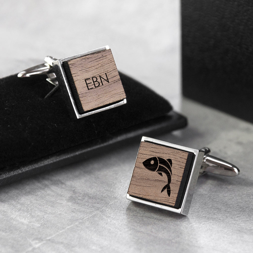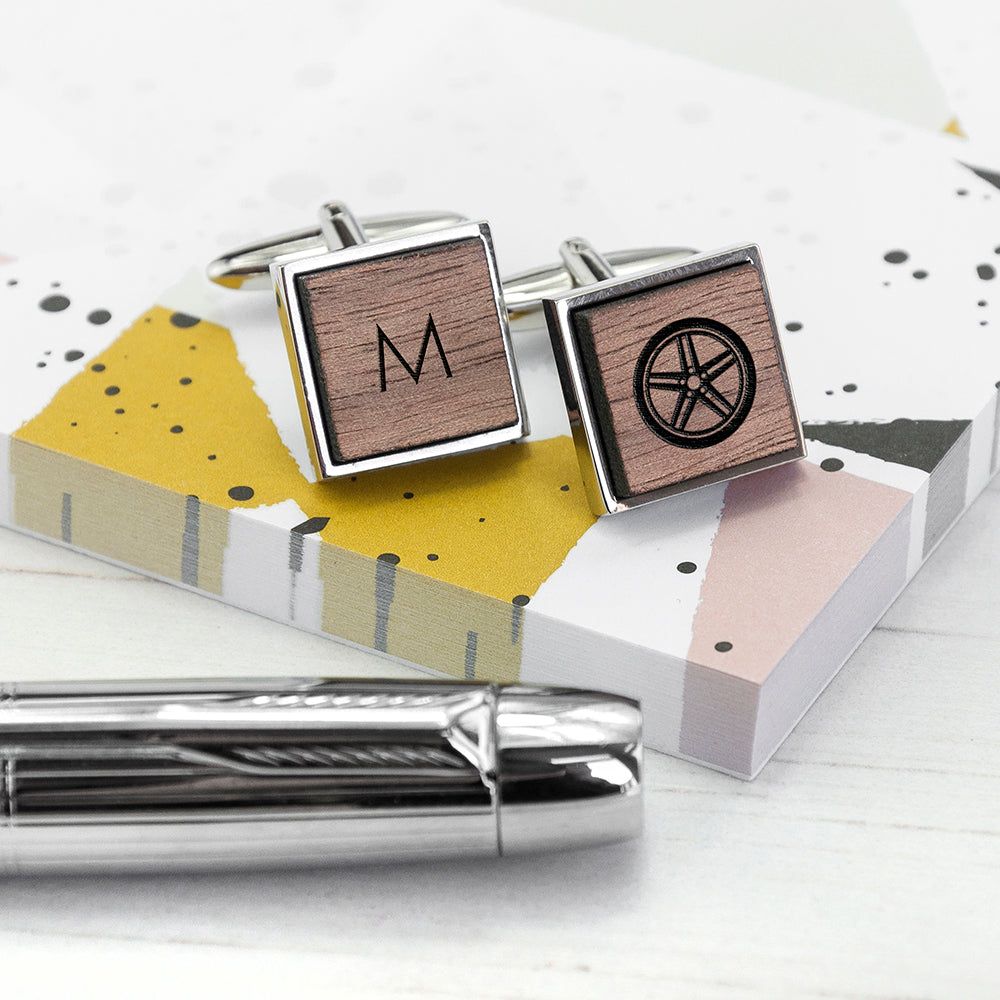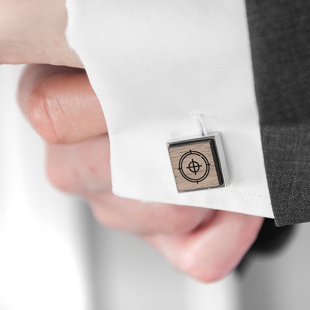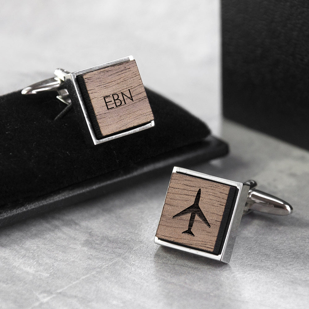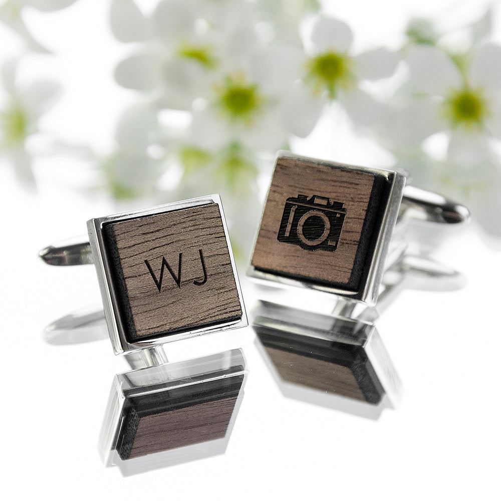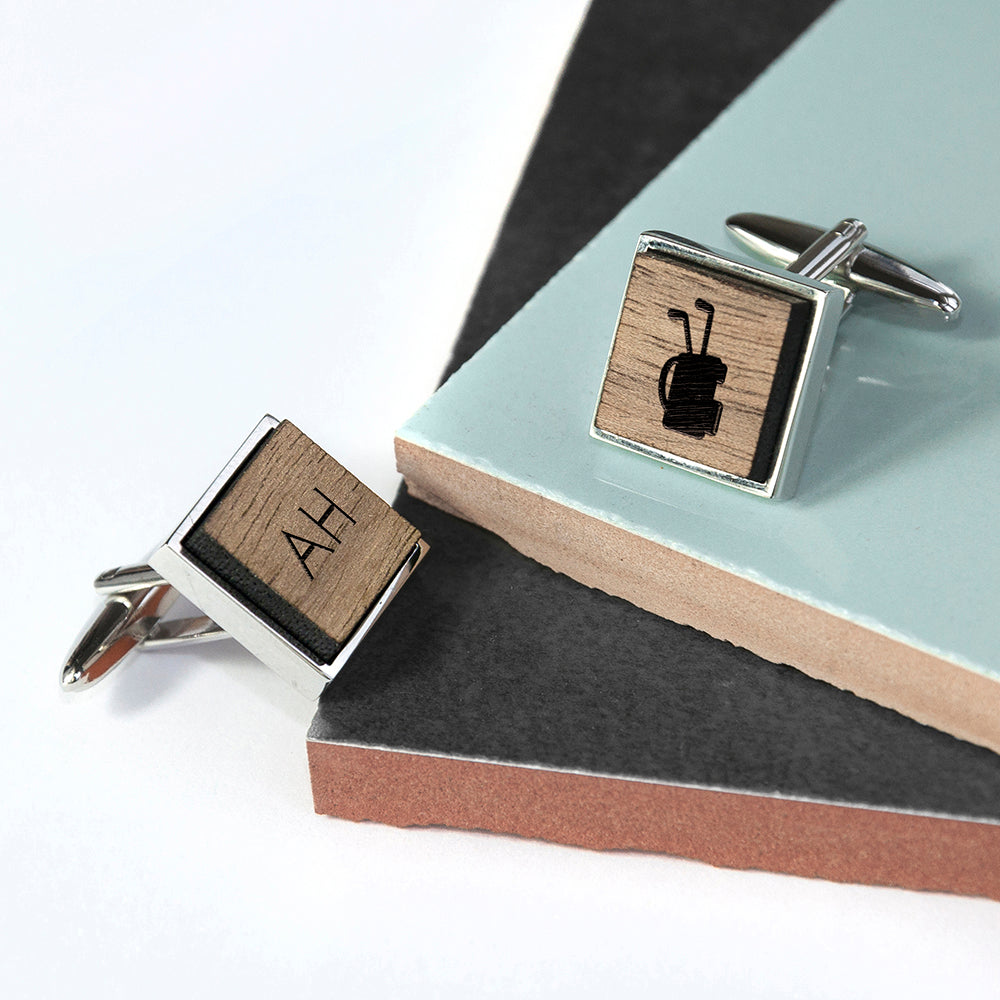 Iconic Hobbies Engraved Square Walnut Cufflinks