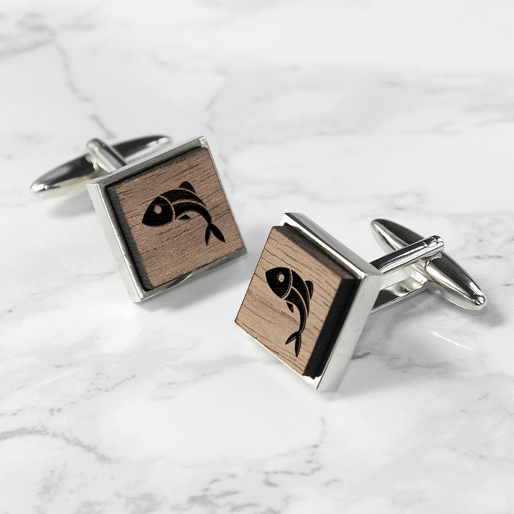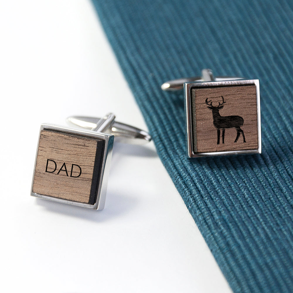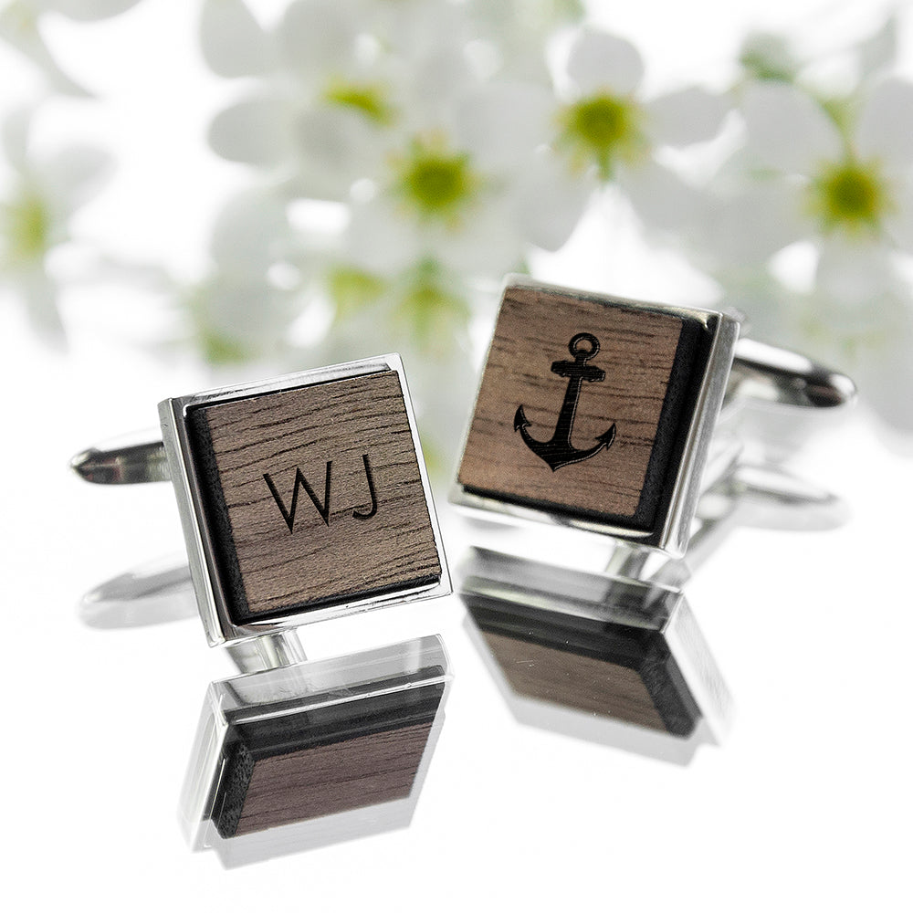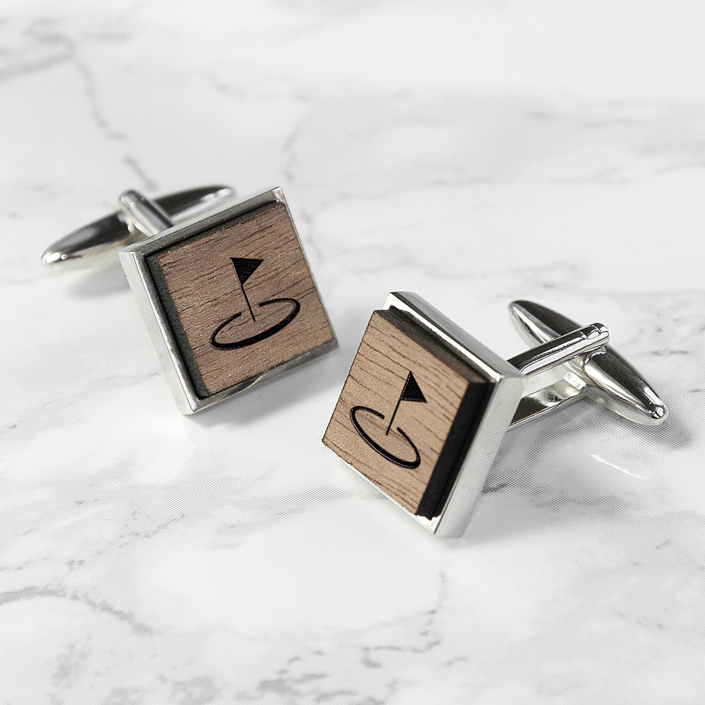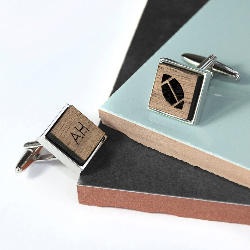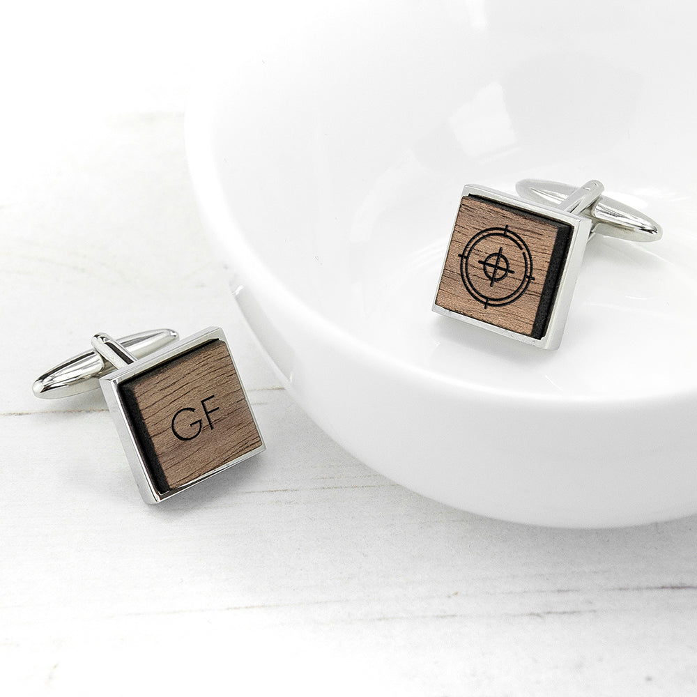 Iconic Hobbies Engraved Square Walnut Cufflinks