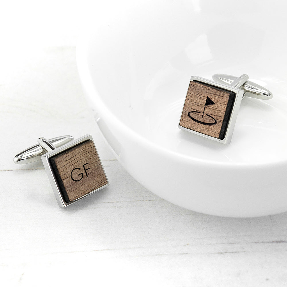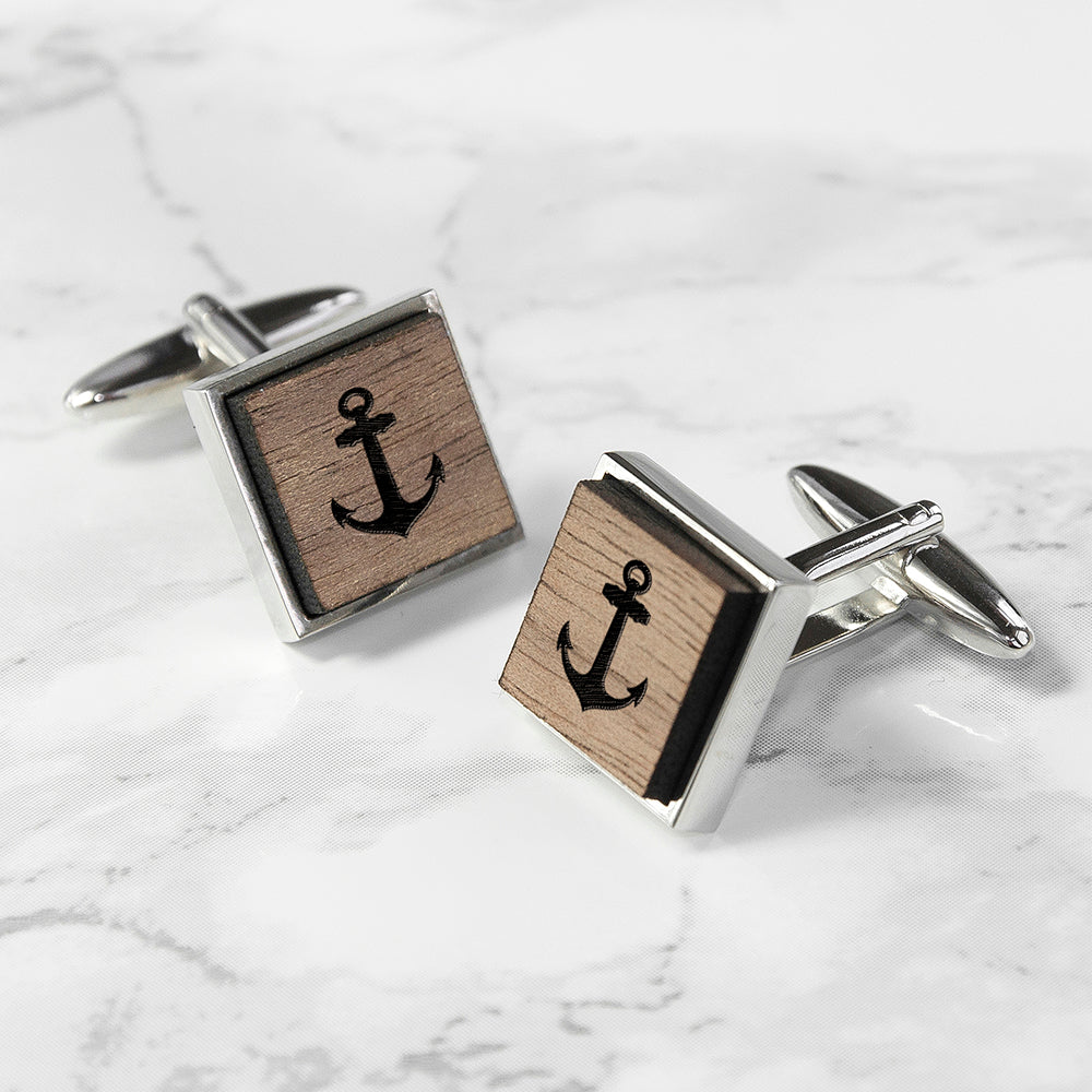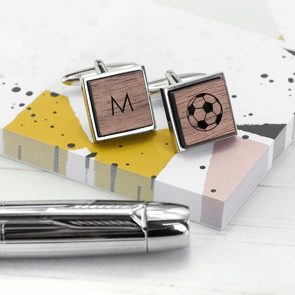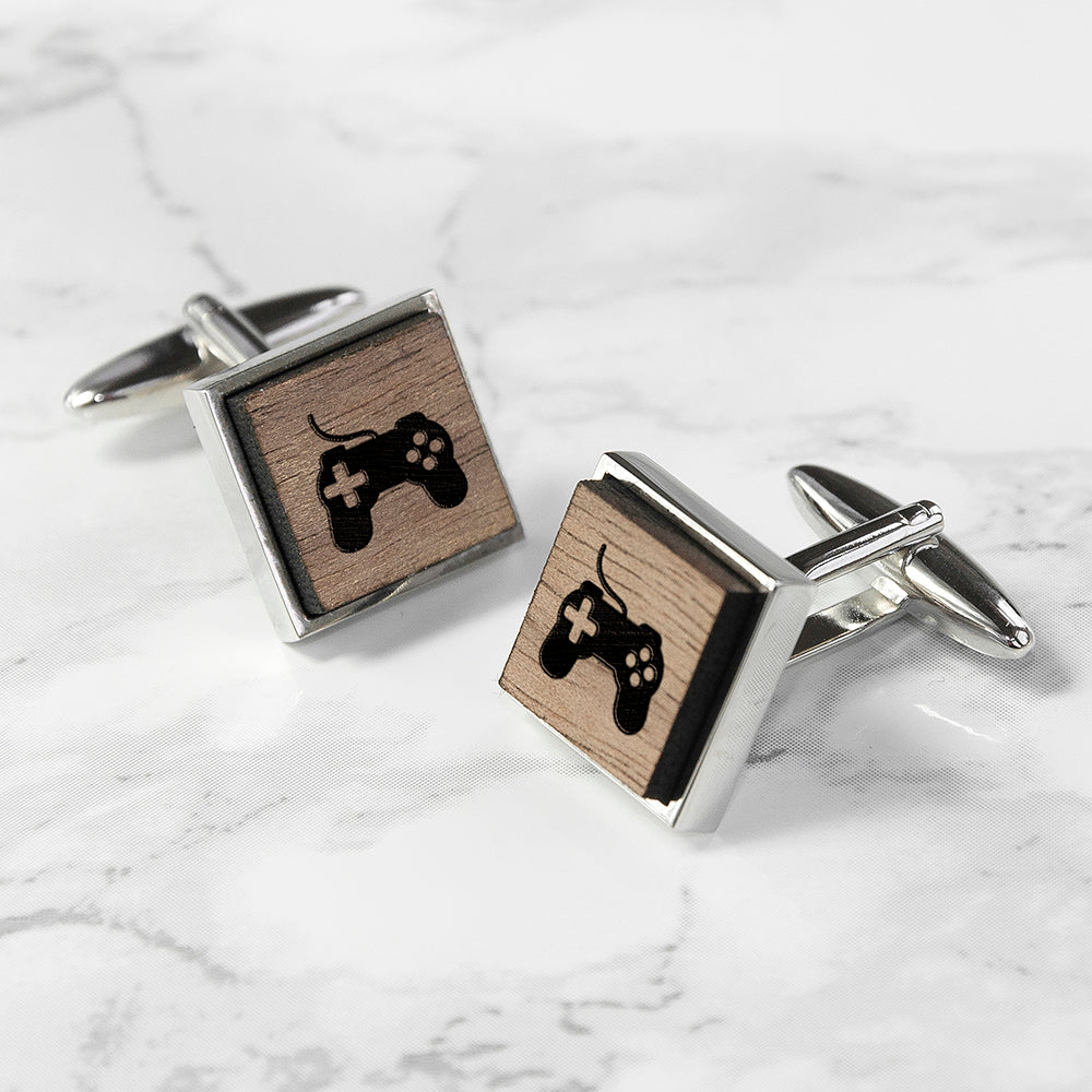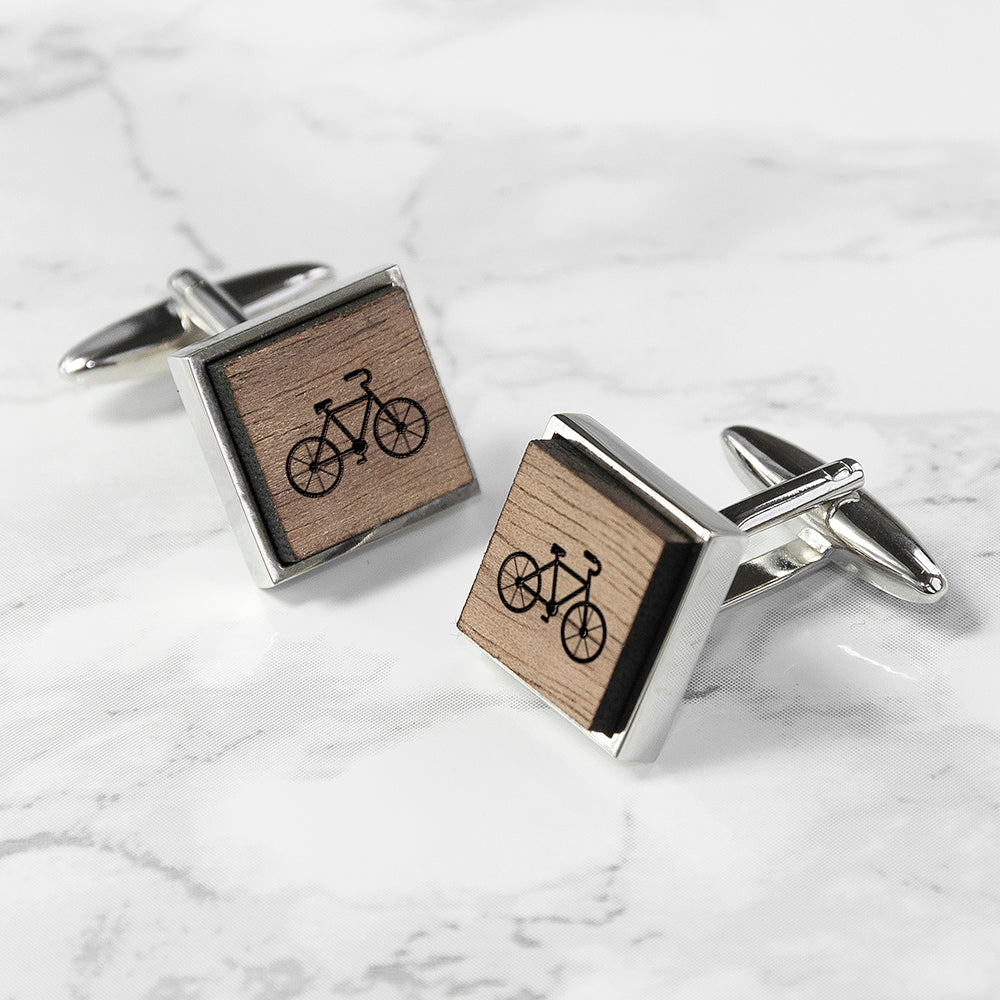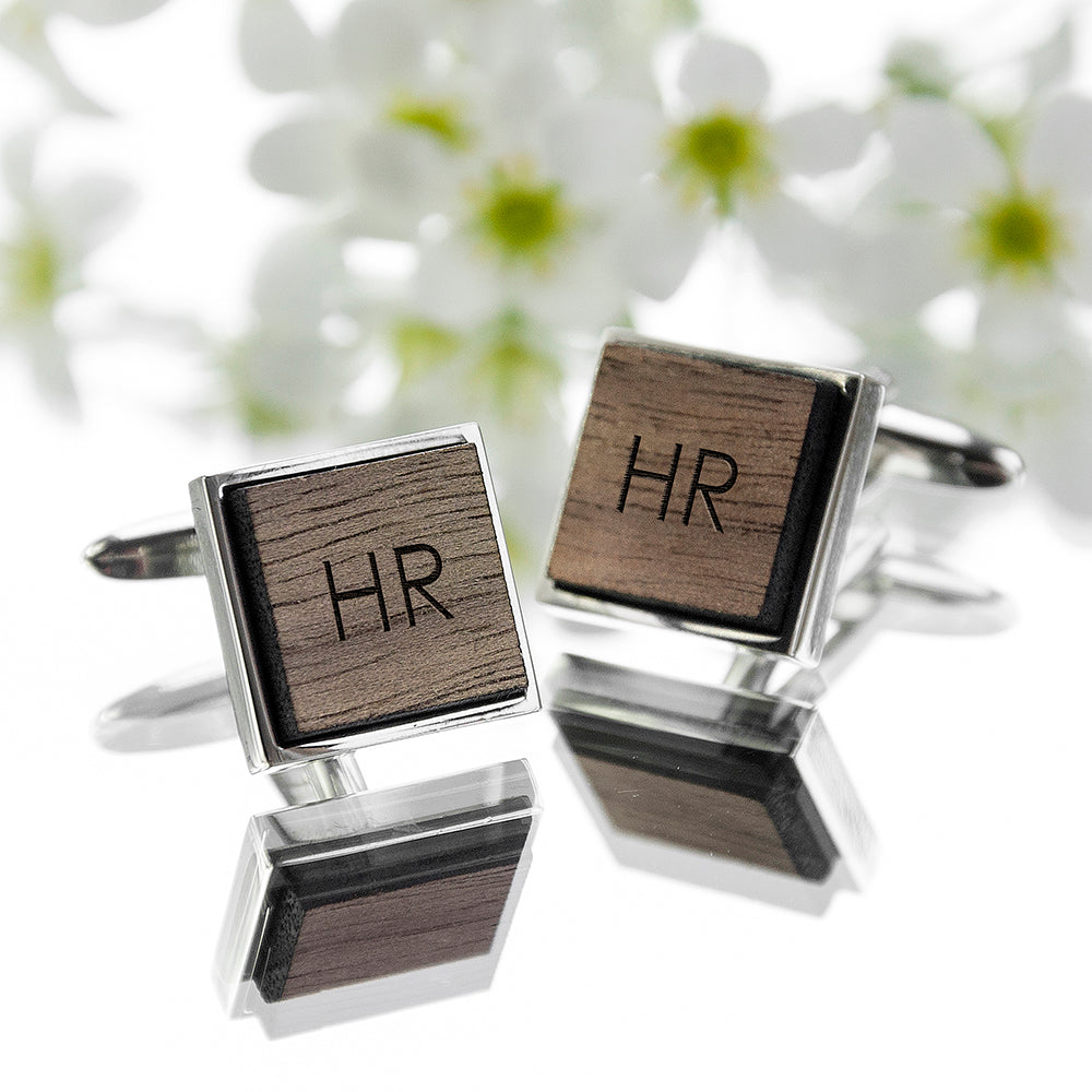 Iconic Hobbies Engraved Square Walnut Cufflinks