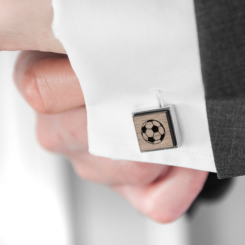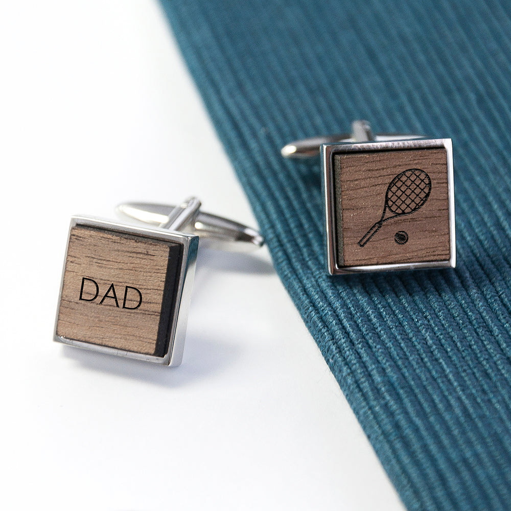 Celebrate his passion with these unique, personalised hobby cufflinks! From cycling and golfing to football and tennis, we've covered every interest. He'll proudly wear an icon representing his favorite pastime, beautifully engraved onto sustainable walnut wood. Can't pick just one? Choose a different hobby for each cufflink to reflect his diverse interests! Each wooden inlay is lovingly mounted onto highly polished chrome backs for a sophisticated finish.