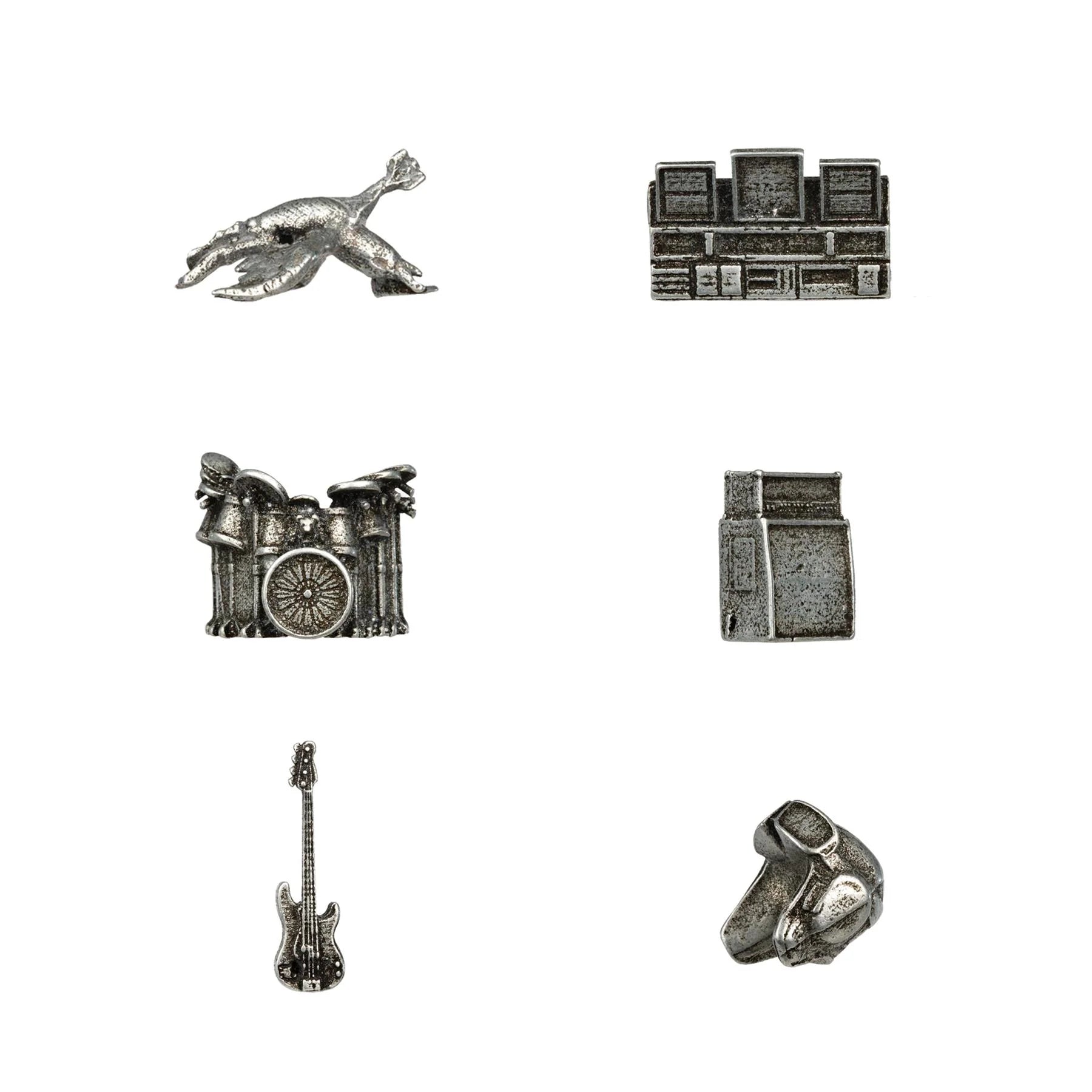 - Featuring 6 custom sculpted tokens – Guitar Amp Stack, Steve’s Bass, Nicko’s Drum Kit, Albatross, Flying Helmet, and Wasted Years Computer