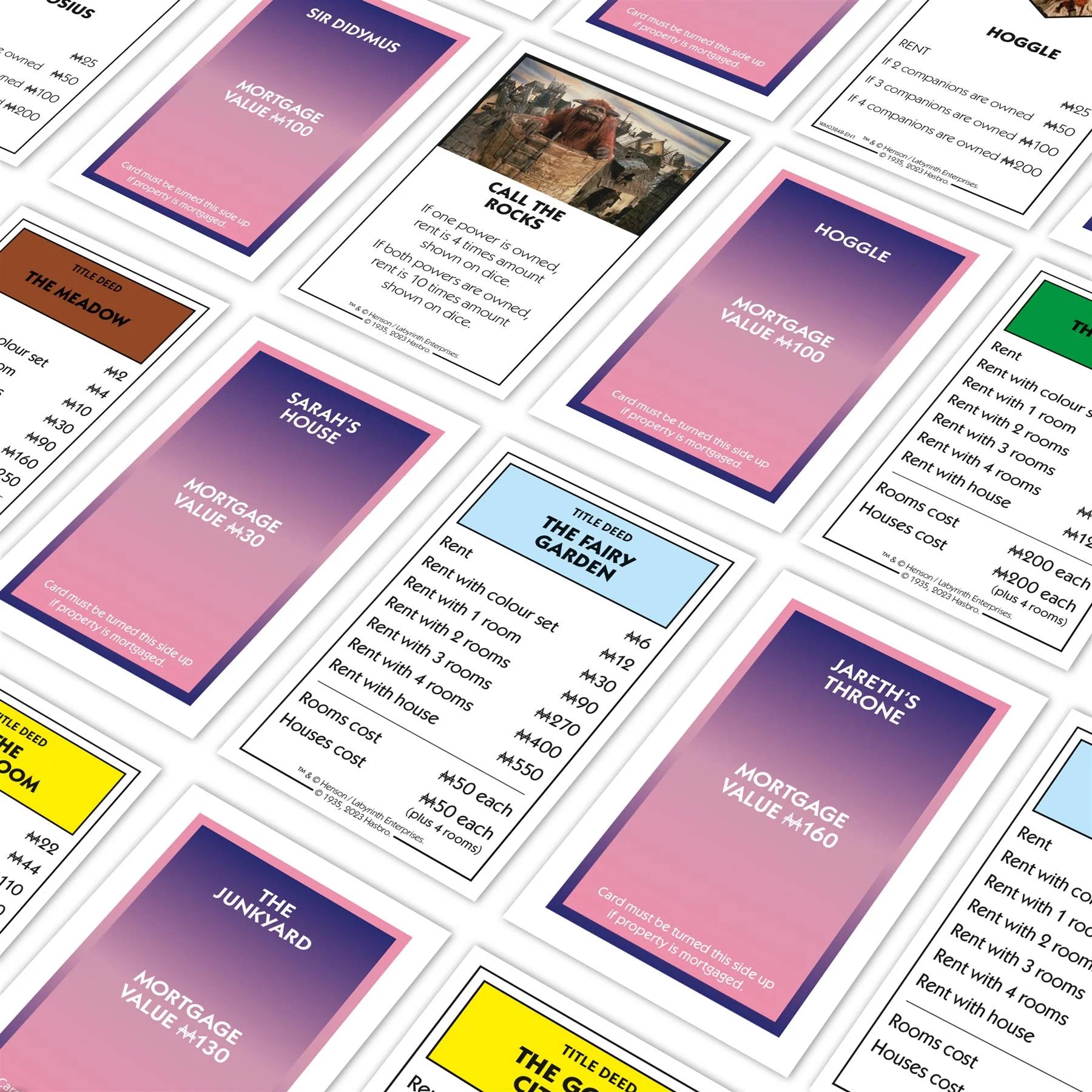 - Buy up colour sets and use custom Monopoly money, branded by the Goblin King himself, to expand your empire with rooms and houses