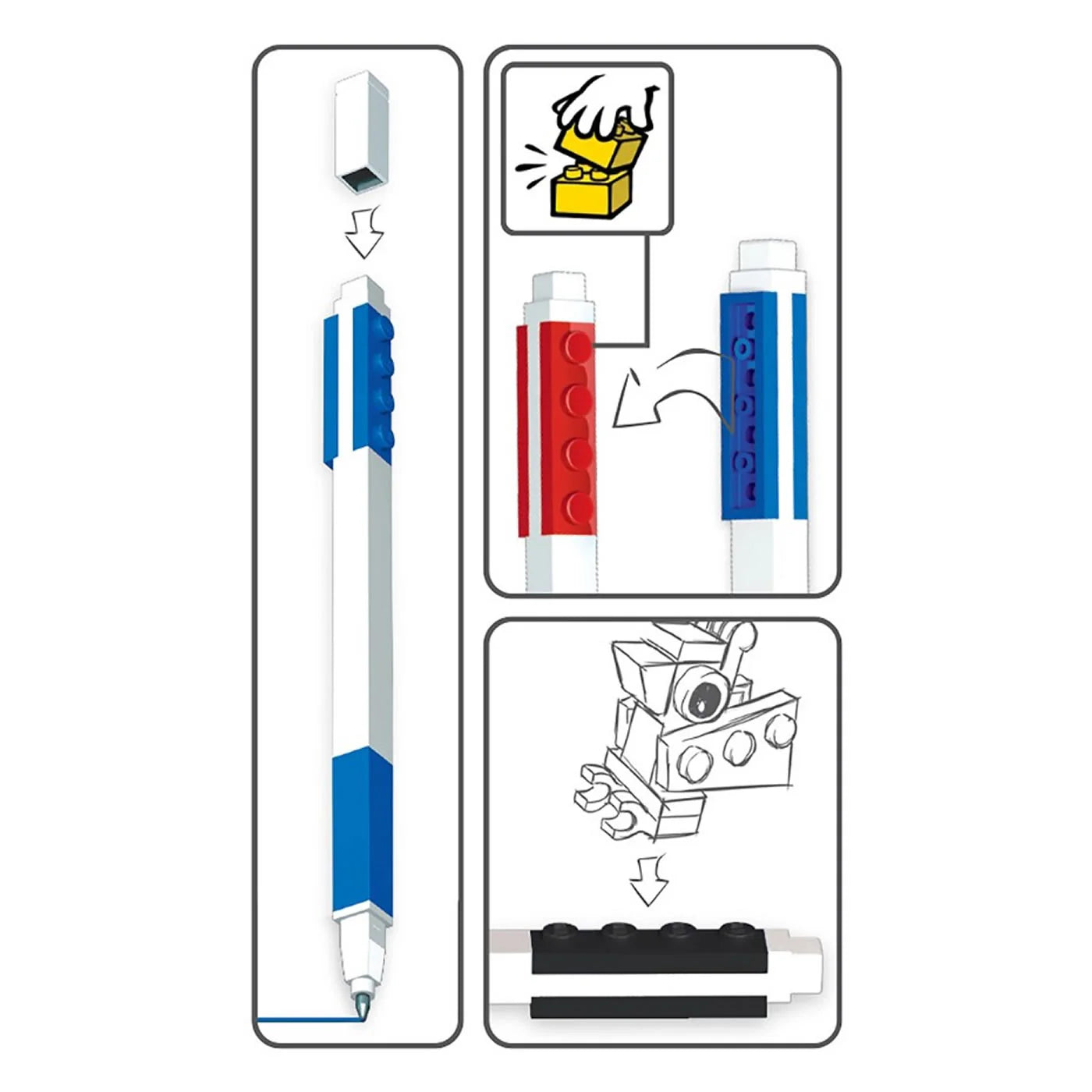 - Embedded 1 x 4cm Lego Bricks on front and back of gel pen