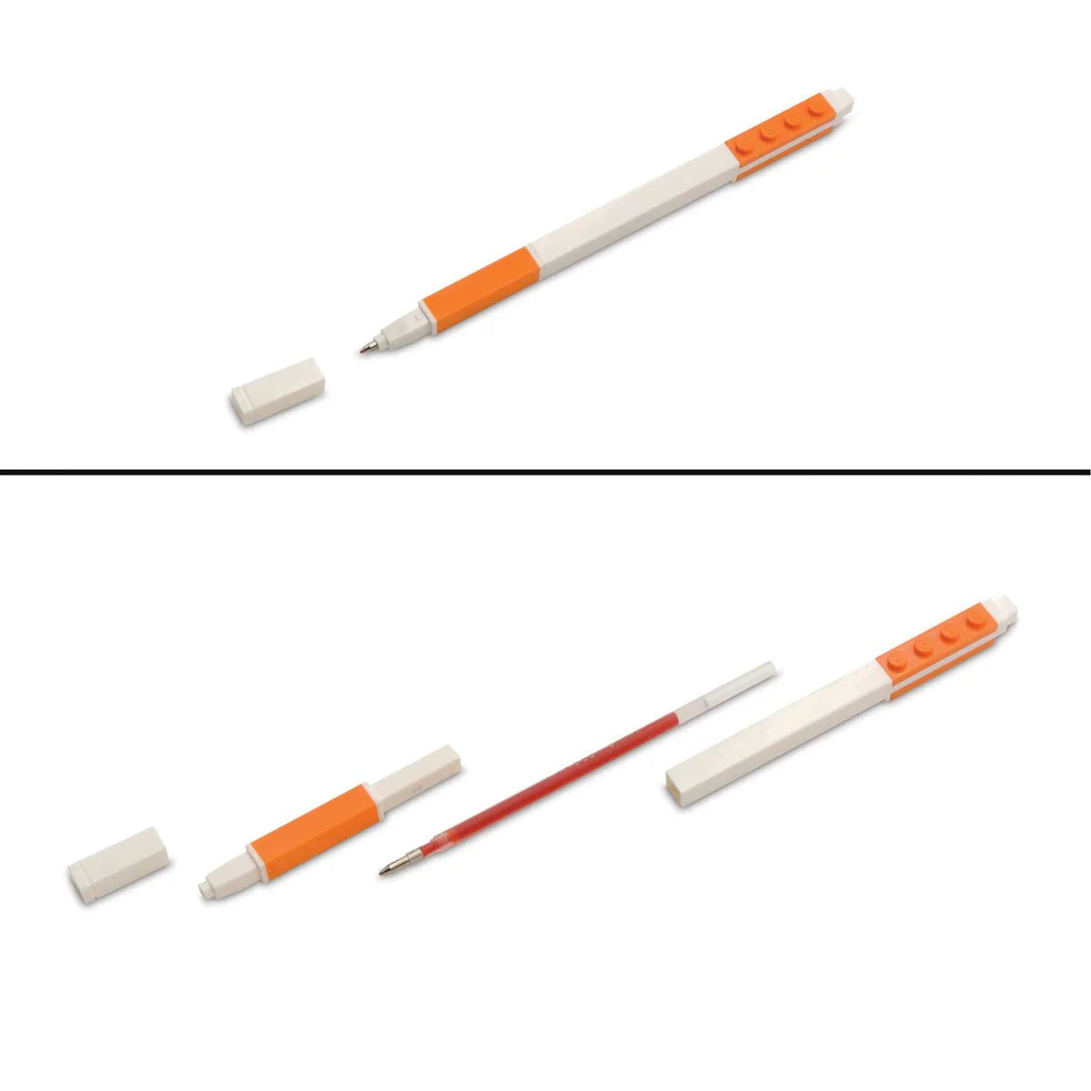 This colourful Lego Gel Pen is the perfect pencil case companion and comes with a built-in Lego brick which perfectly matches the pens Orange gel ink.