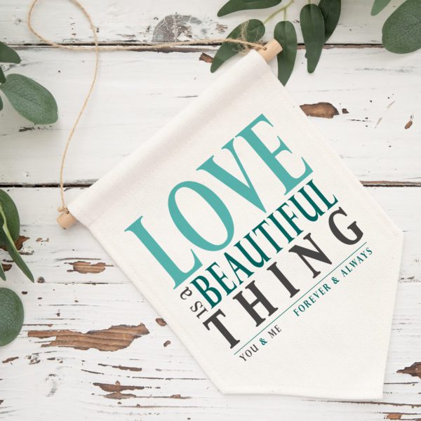 Celebrate your love with this beautifully crafted pennant flag, a perfect addition to any home.