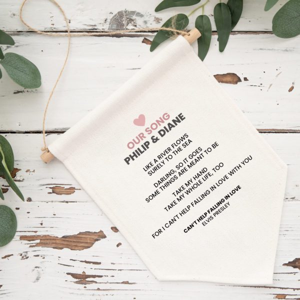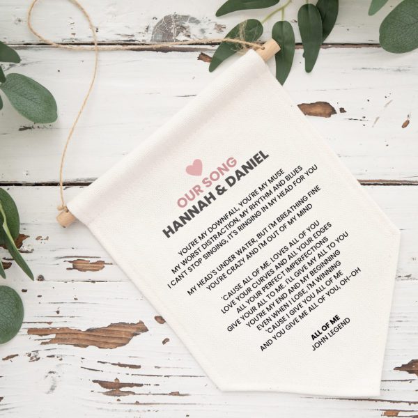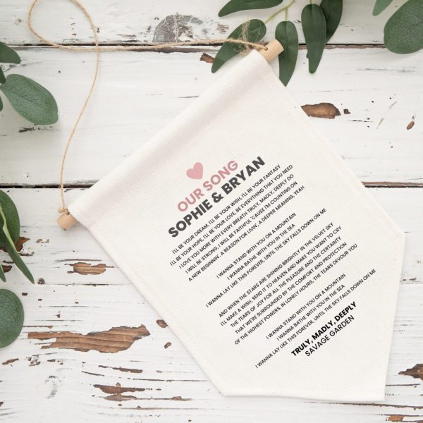 - Personalised Design: Customise with two names and the song title and artist/band. Your chosen lyrics will be featured prominently on the flag.