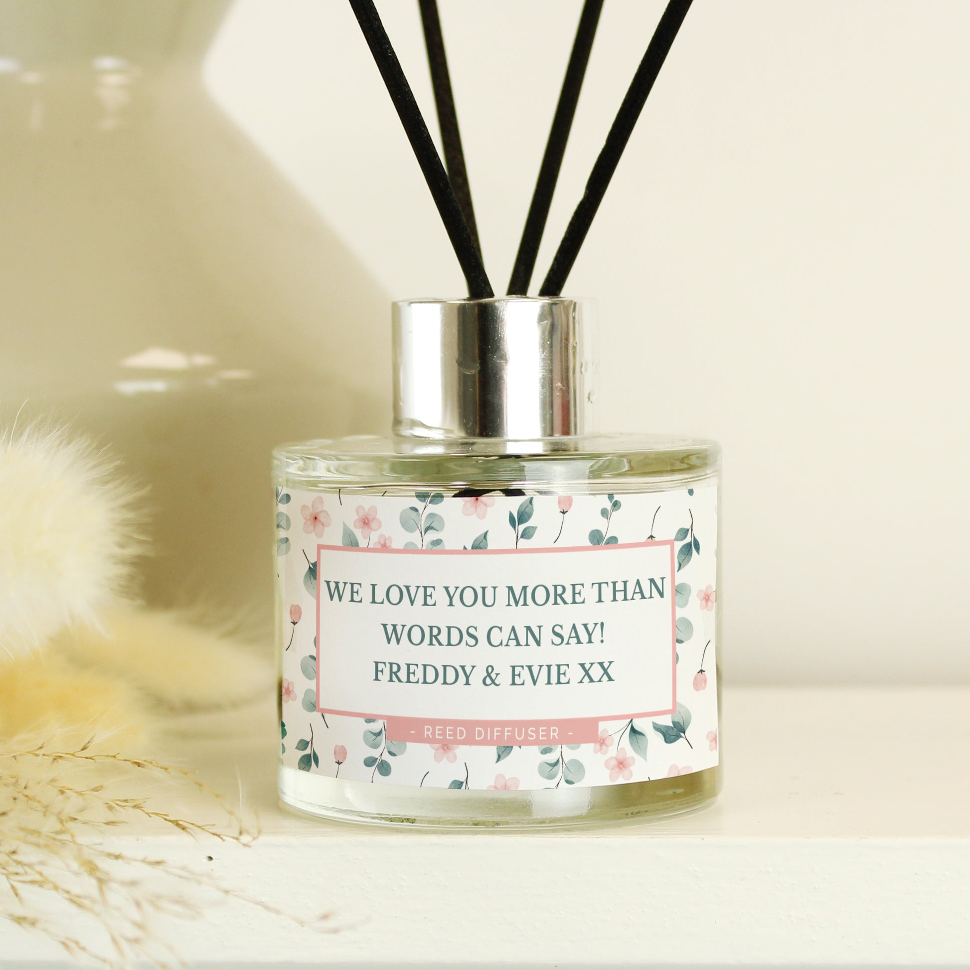 Elevate your home with this beautifully crafted reed diffuser, personalised with your special message.