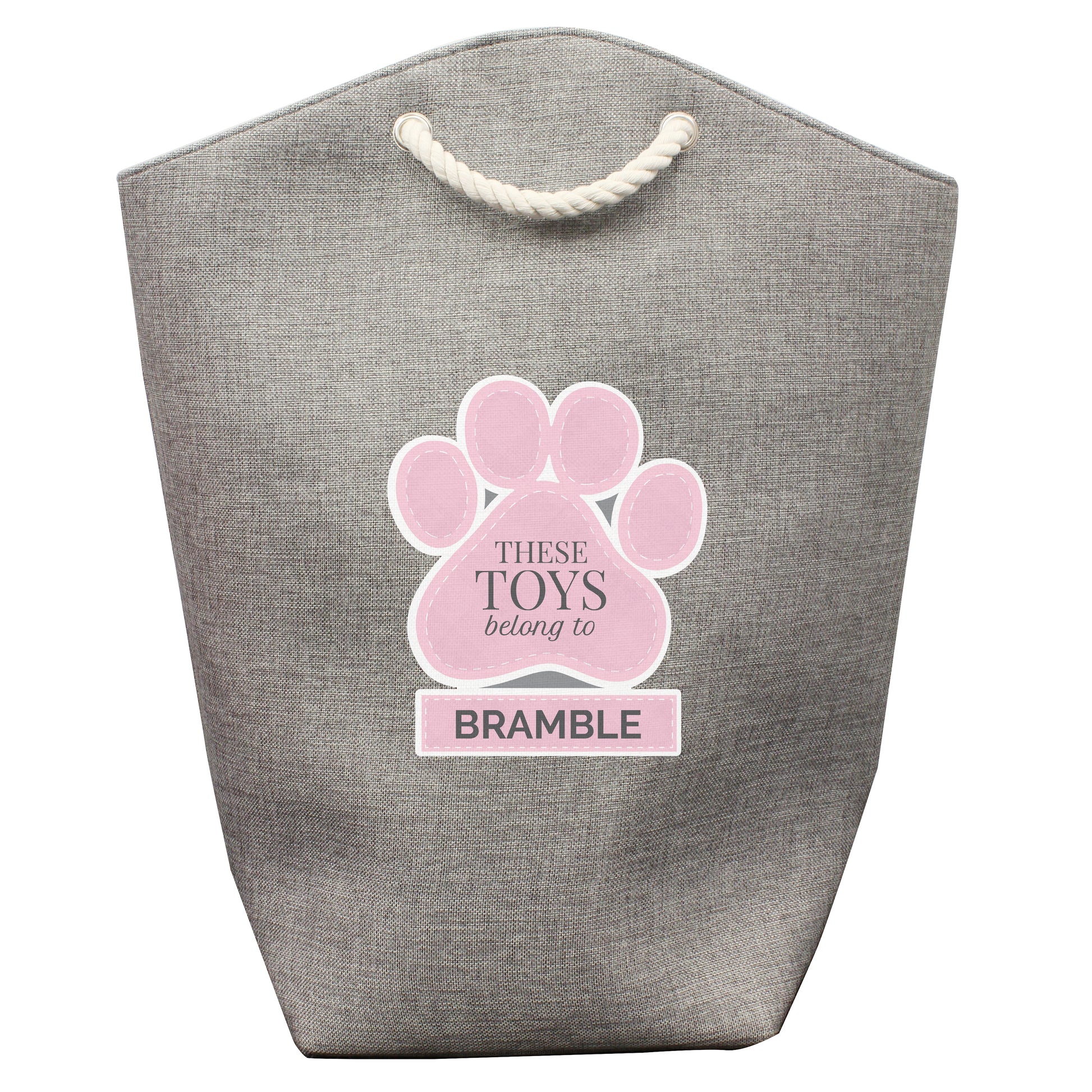Keep your dog's toys and blankets organised with this personalised pink storage bag. Featuring a paw print design and a personalised name, it's both functional and stylish.