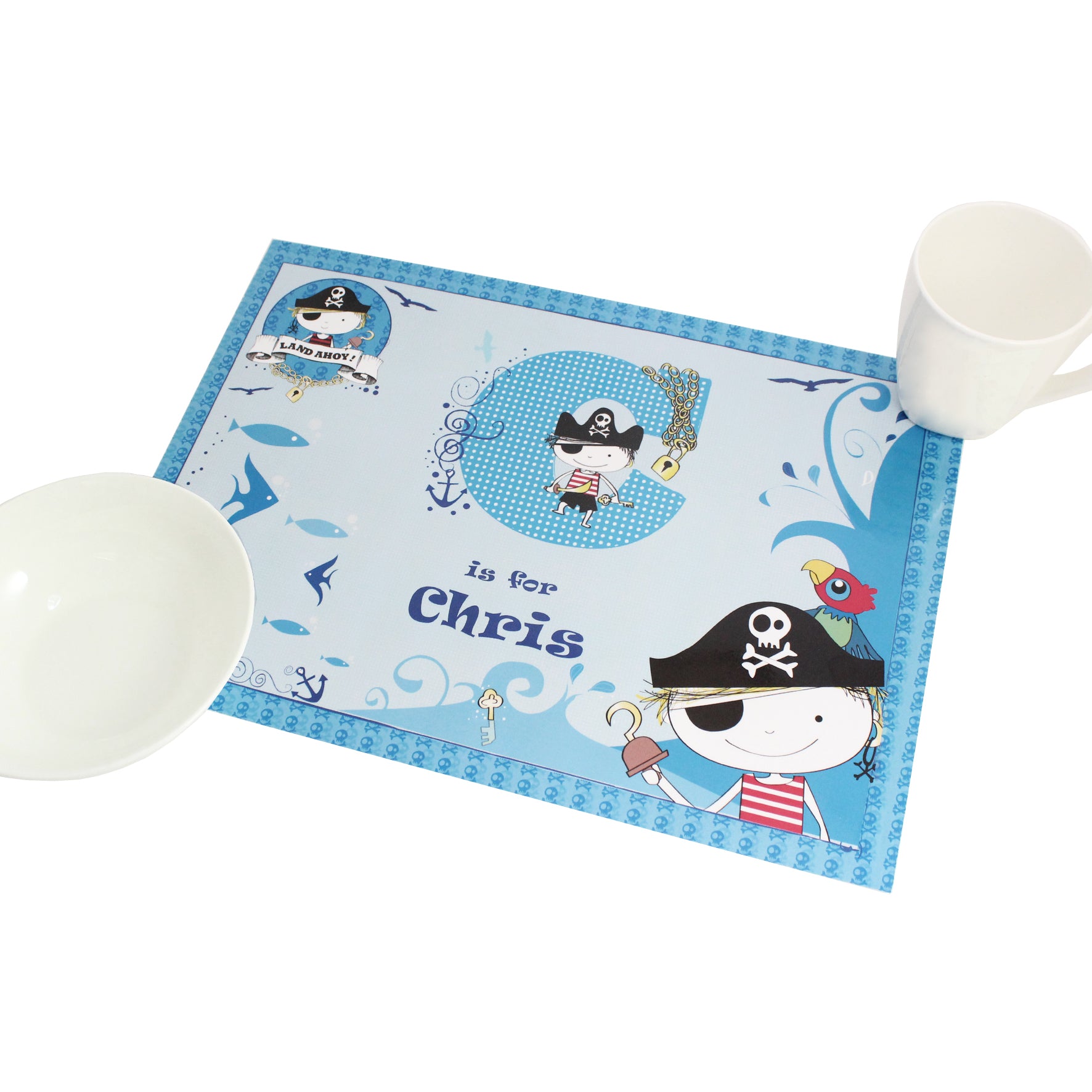 Set sail for fun mealtimes with our personalised pirate placemat. Featuring an engaging pirate design and your child's name, it's the perfect accessory for young adventurers.