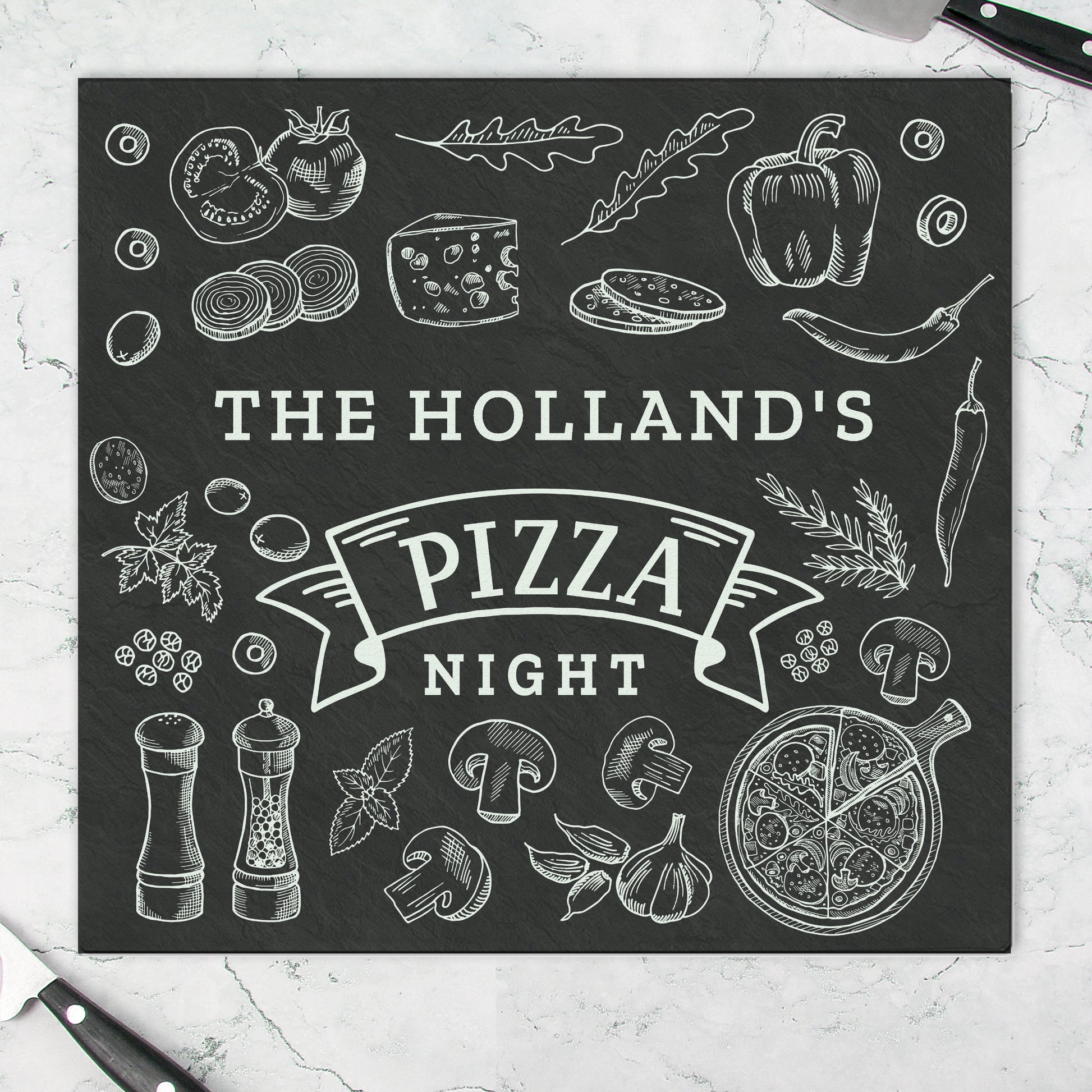 Give the gift of style and functionality with this personalised pizza chopping board.
