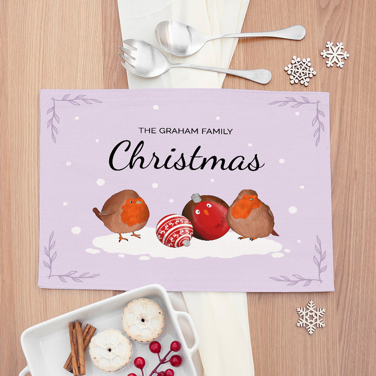 Our beautiful personalised robin baubles Christmas placemat is the perfect way to add a personal touch to your dining table this Christmas. It's perfect for families who want to enjoy a festive meal together, or for anyone who loves to entertain during the holiday season. The placemat is made of linen and is reusable.
