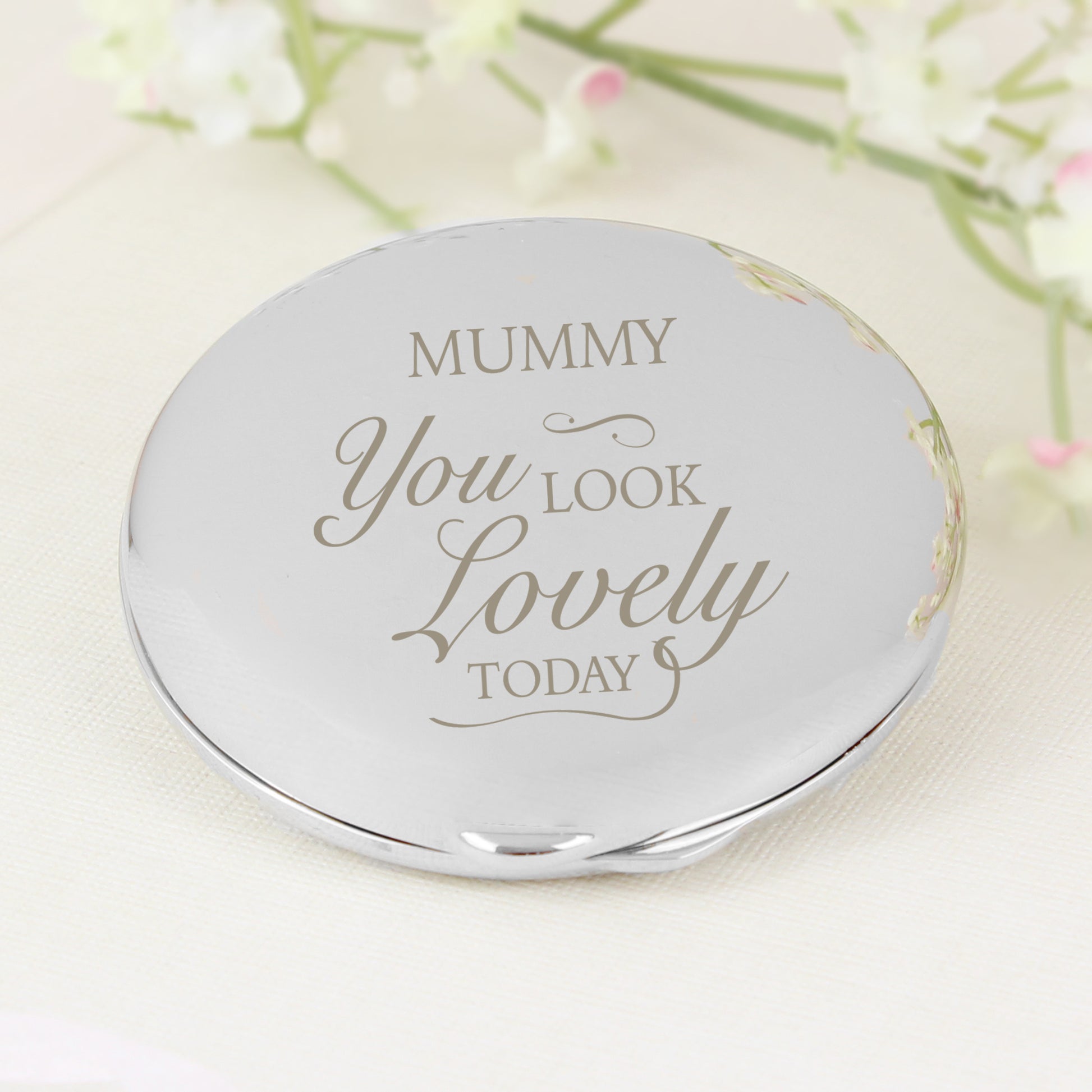 A beautiful reminder of their inner and outer beauty. This stunning compact mirror is the ideal gift for someone who takes pride in their appearance. The fixed, heartfelt message 'YOU LOOK LOVELY TODAY' is a perfect compliment, while the personalisation allows you to add a unique touch. You can engrave a name up to 12 characters, which will appear in UPPERCASE. This nickel-plated mirror comes with a complimentary black pouch, making it an elegant and cherished gift for Birthdays, Weddings, Valentine's Day, or Mother's Day.