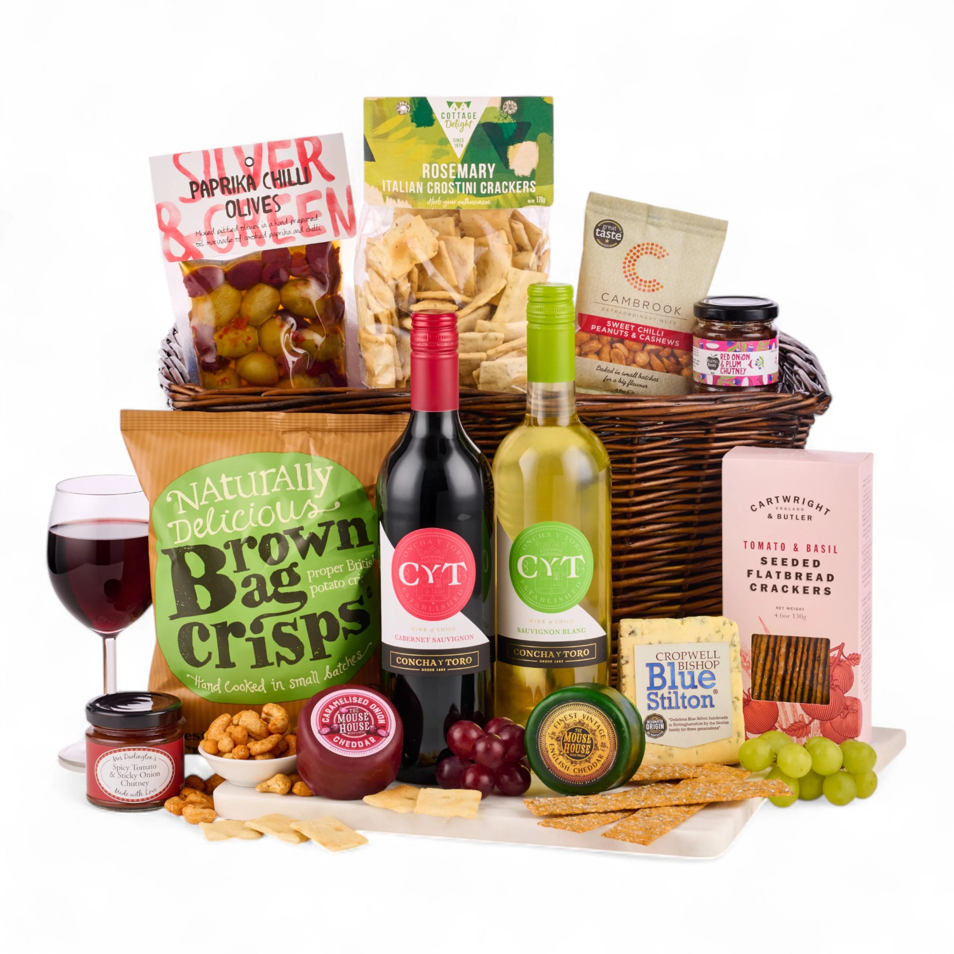 The Boxing Day Hamper is the perfect way to keep the festive spirit alive, ideal for sharing with family and friends as you continue the celebrations. Beautifully presented in a charming wicker tray, this hamper features two outstanding Chilean wines: a smooth, full-bodied CYT Cabernet Sauvignon with notes of dark berries and spice, and a crisp, zesty CYT Sauvignon Blanc with vibrant citrus undertones.
